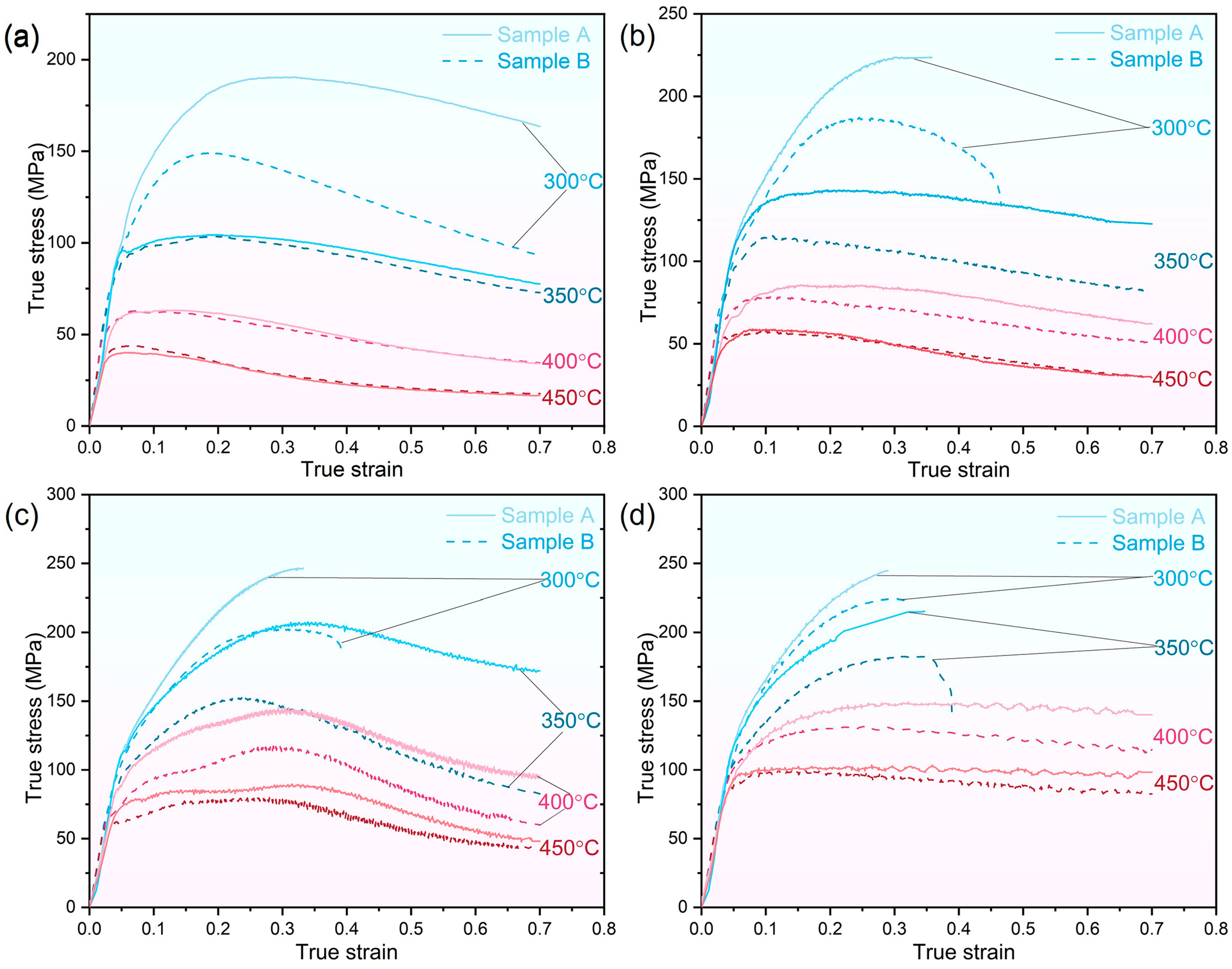 3.2.2. Effect of Initial Microstructures on Flow Stress