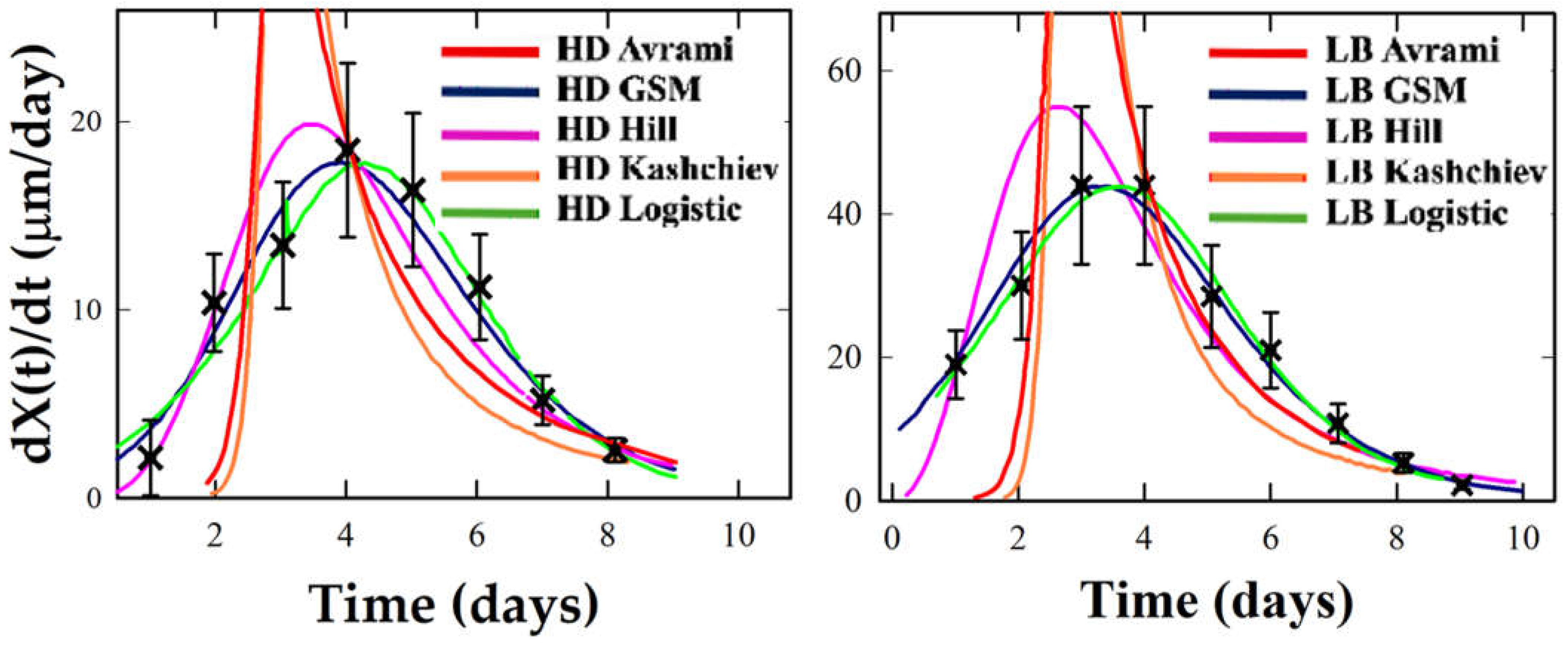 | GSM | k = 27.71, t0 = 0.5453, m = 1.08 | k = 9.197, t0 = 0.5692, m = 0.368 |