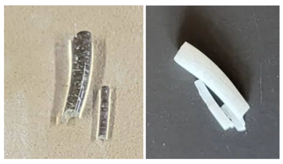 Based on the obtained DTA curves (Figure 1 and Figure 2), the heat-treatment temperature was determined for each glass composition in order to induce glass-ceramic formation. Figure 3 presents an example of the 7.5 La sample before and after ceramization.