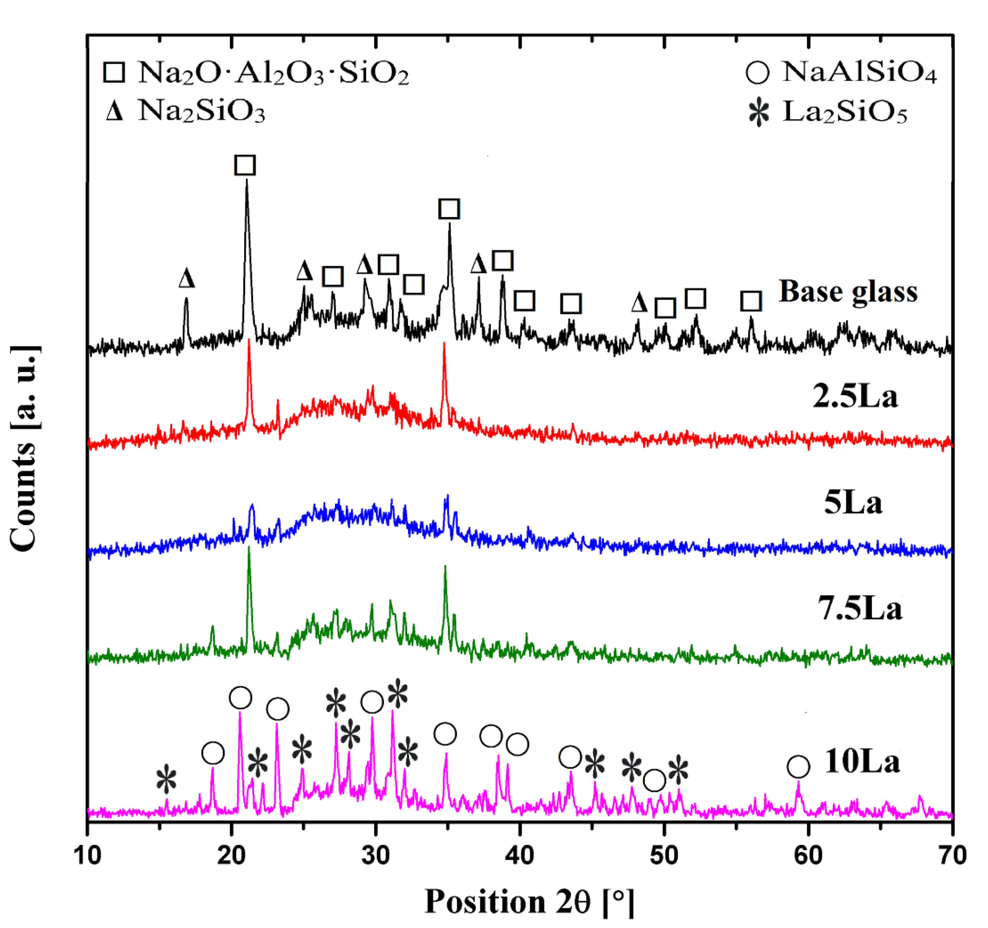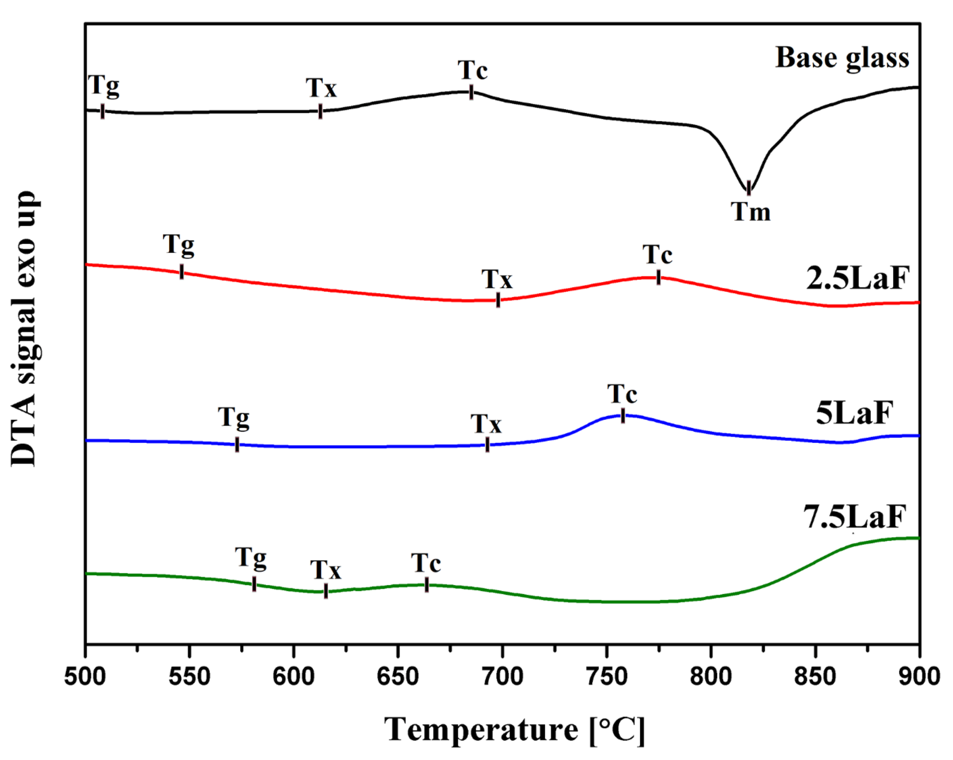 - The addition of La2O3 or LaF3 instead of Na2O increases the glass transition temperature.