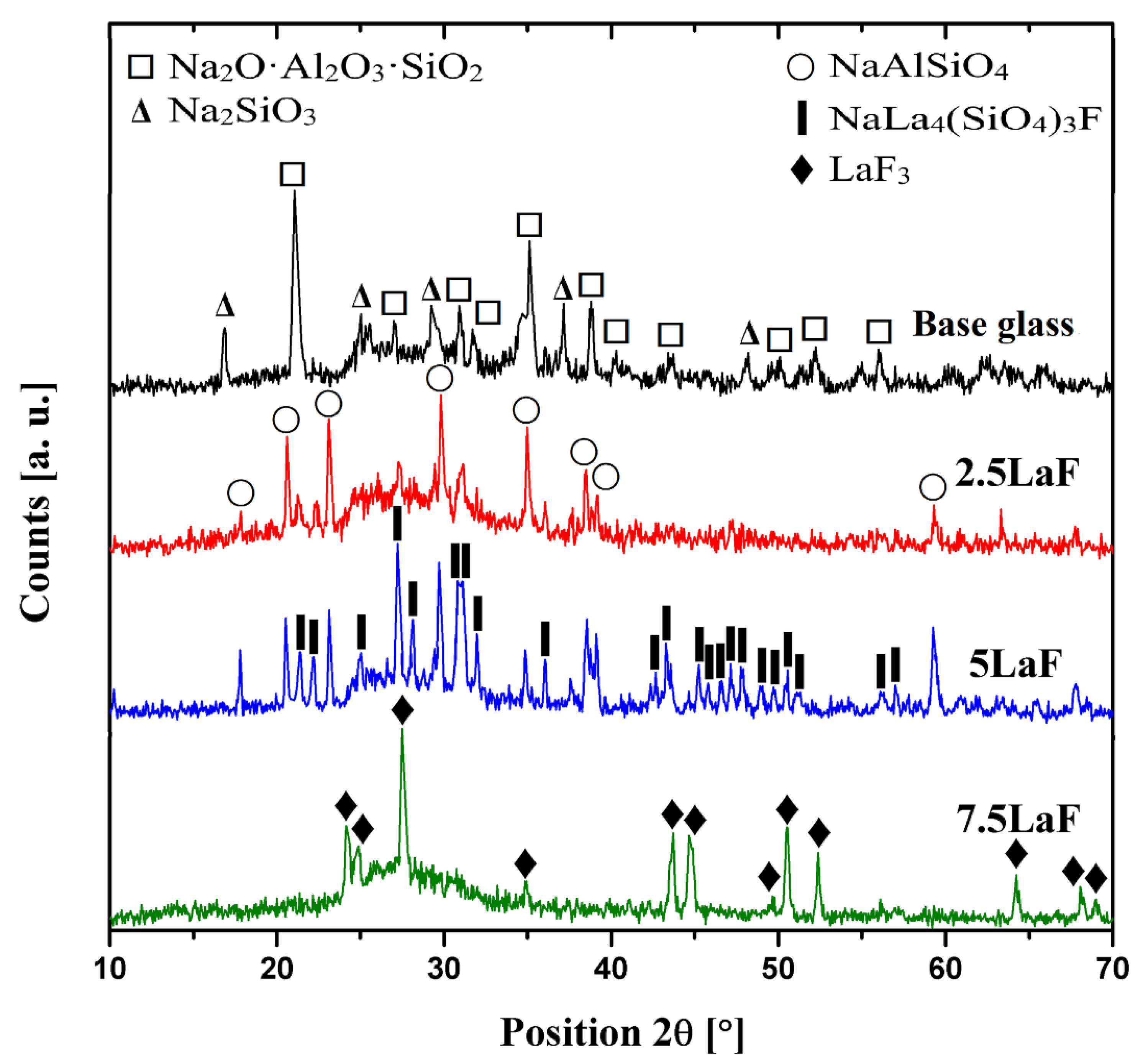 - For glass containing 7.5 mol% LaF3, a low-phonon phase can be obtained through a controlled crystallization process.