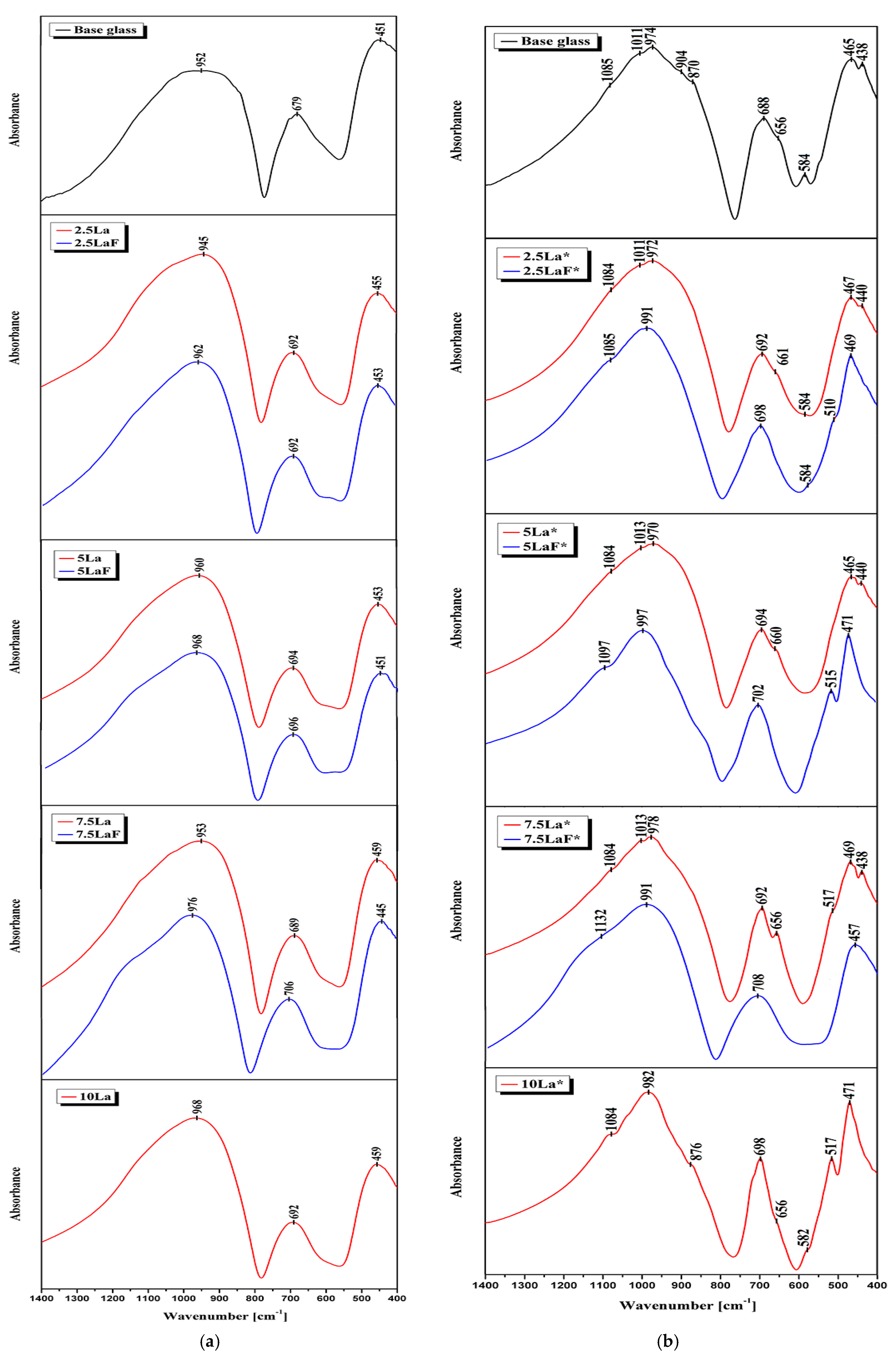 - Stoch, L.; Środa, M. Infrared spectroscopy in the investigation of oxide glasses structure. J. Mol. Struct. 1999, 511–512, 77–84. [Google Scholar] [CrossRef]