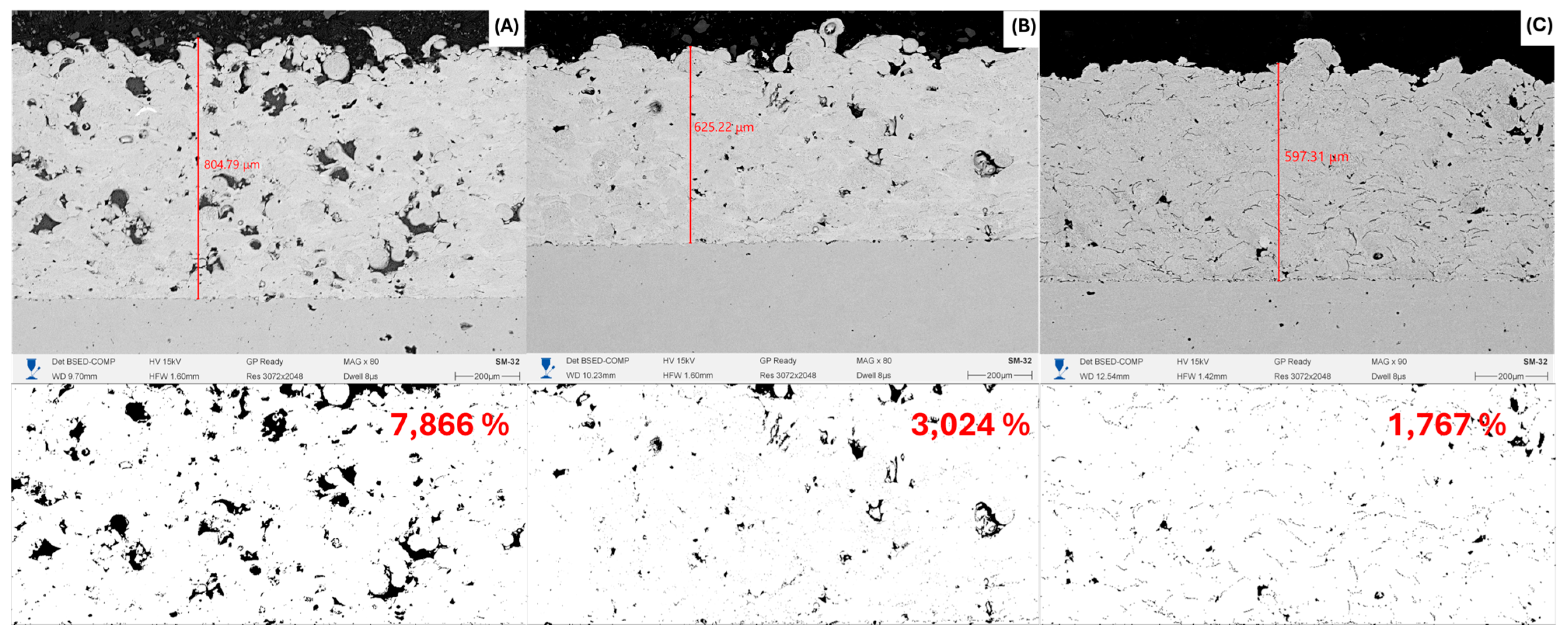 - ISO/TR 26946:2011; Standard Method for Porosity Measurement of Thermally Sprayed Coatings. International Organization for Standardization: Geneva, Switzerland, 2011.