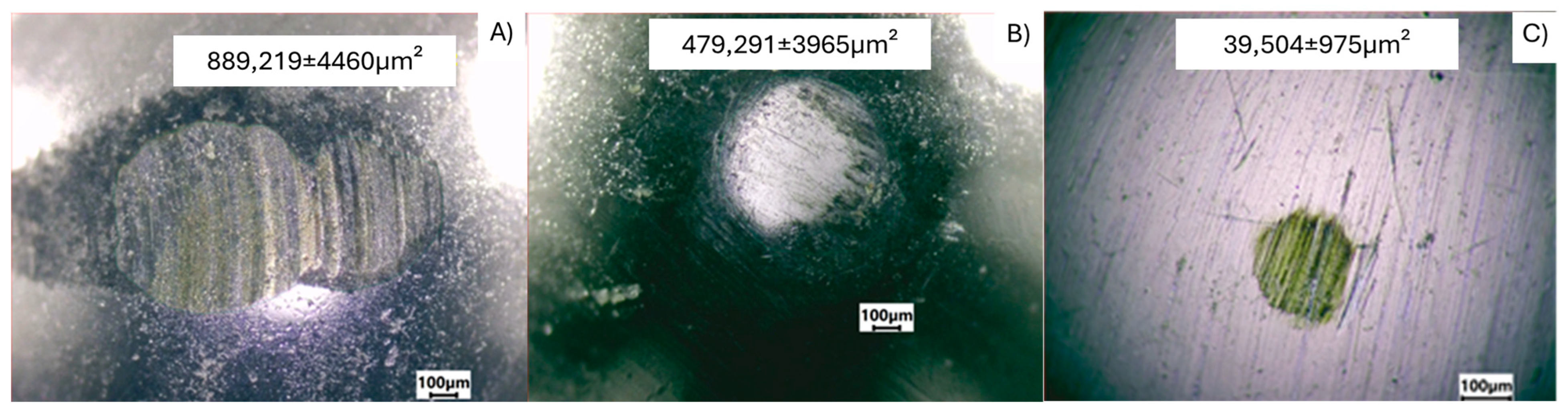 - Counterbody wear (100Cr6 ball): Wear-scar area shrinks with coating modification (0.889 → 0.479 → 0.0395 mm2), confirming improved tribological compatibility.