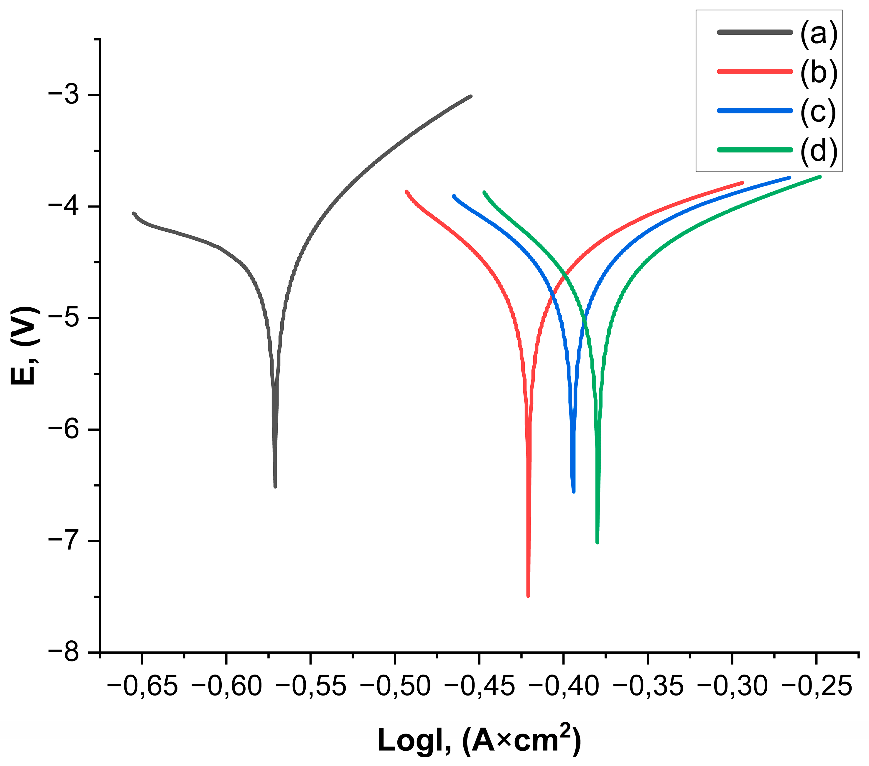 | Icorr (A) | 0.69218 | 0.42371 | 0.39466 | 0.38963 |