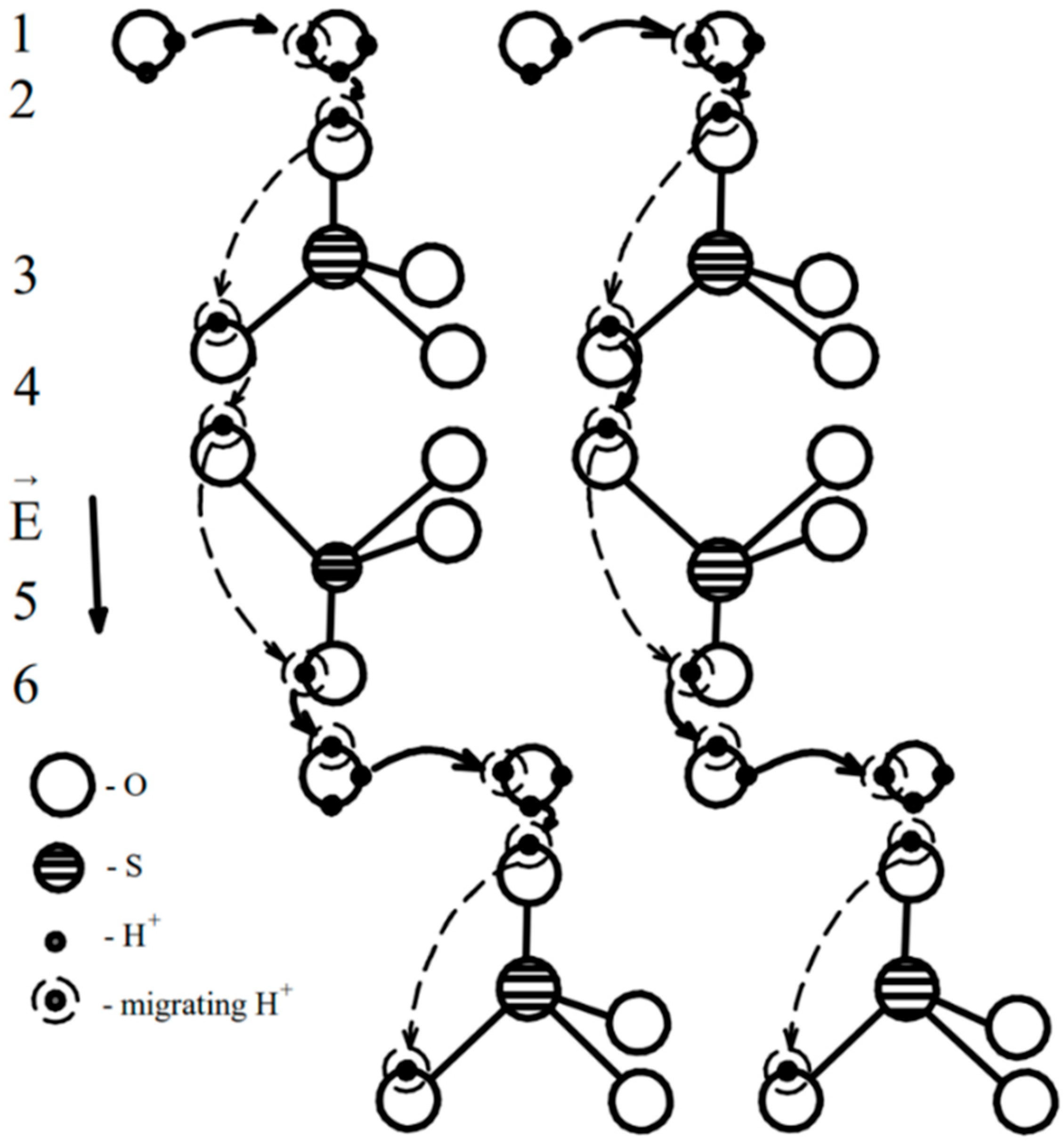 is determined by the diffusion-relaxation movement of protons along hydrogen bonds in the direction of the lines of force of the external electric field (proton conductivity) [