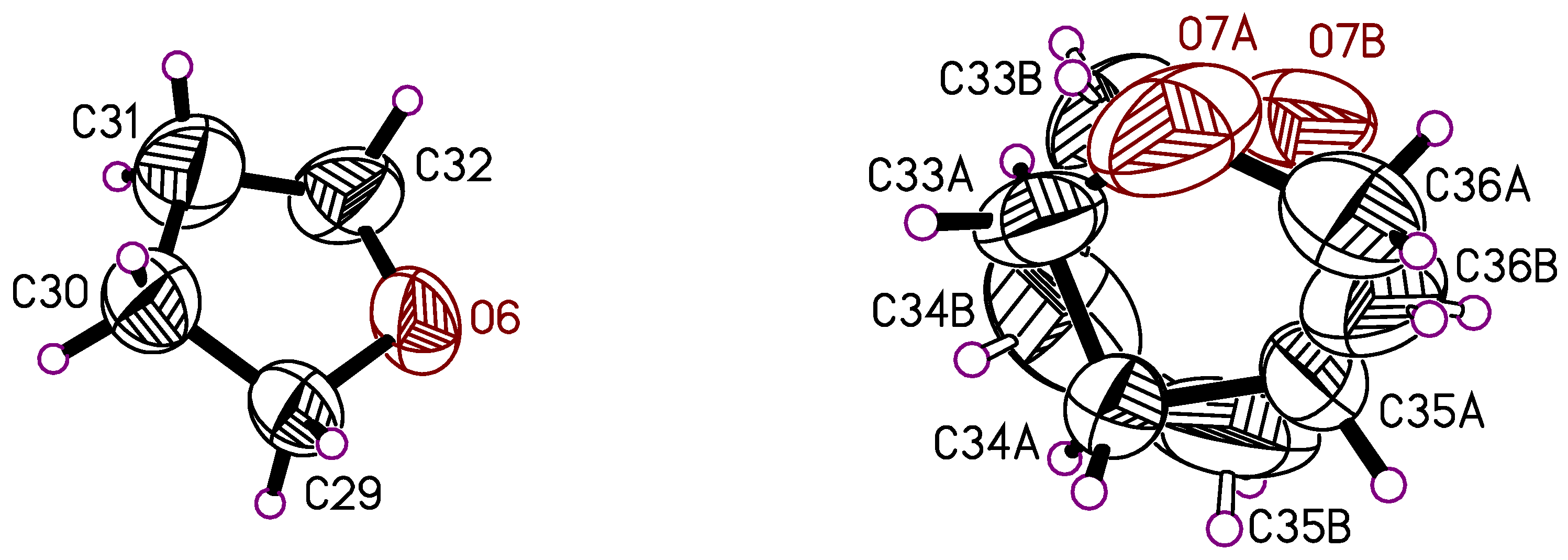 - Spek, A. Single crystal structure validation with the program PLATON. J. Appl. Crystallogr. 2003, 36, 7–13. [Google Scholar] [CrossRef]