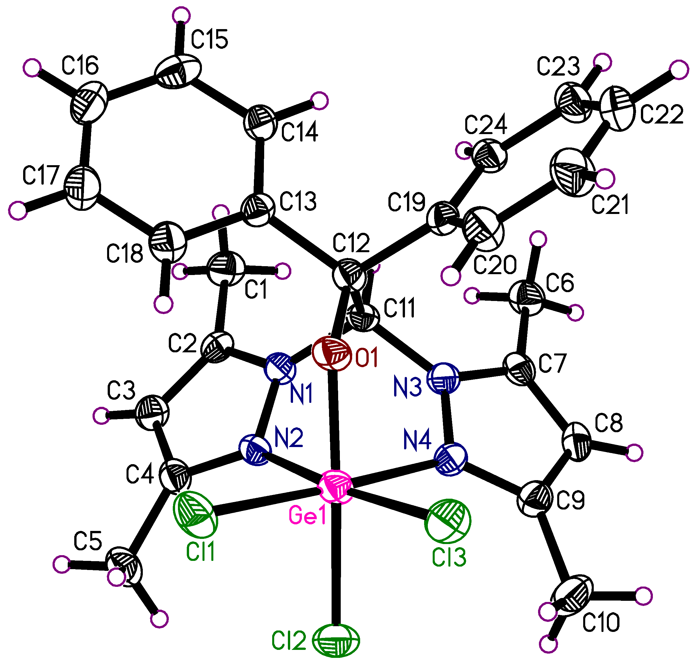 - Pflock, S.; Langer, F.; Reil, M.; Strinitz, L.; Lorenz, R.; Hübner, E.G.; Burzlaff, N. p-Block metal complexes with bis(pyrazol-1-yl)acetato ligands. Dalton Trans. 2022, 51, 3902–3912. [Google Scholar] [CrossRef]