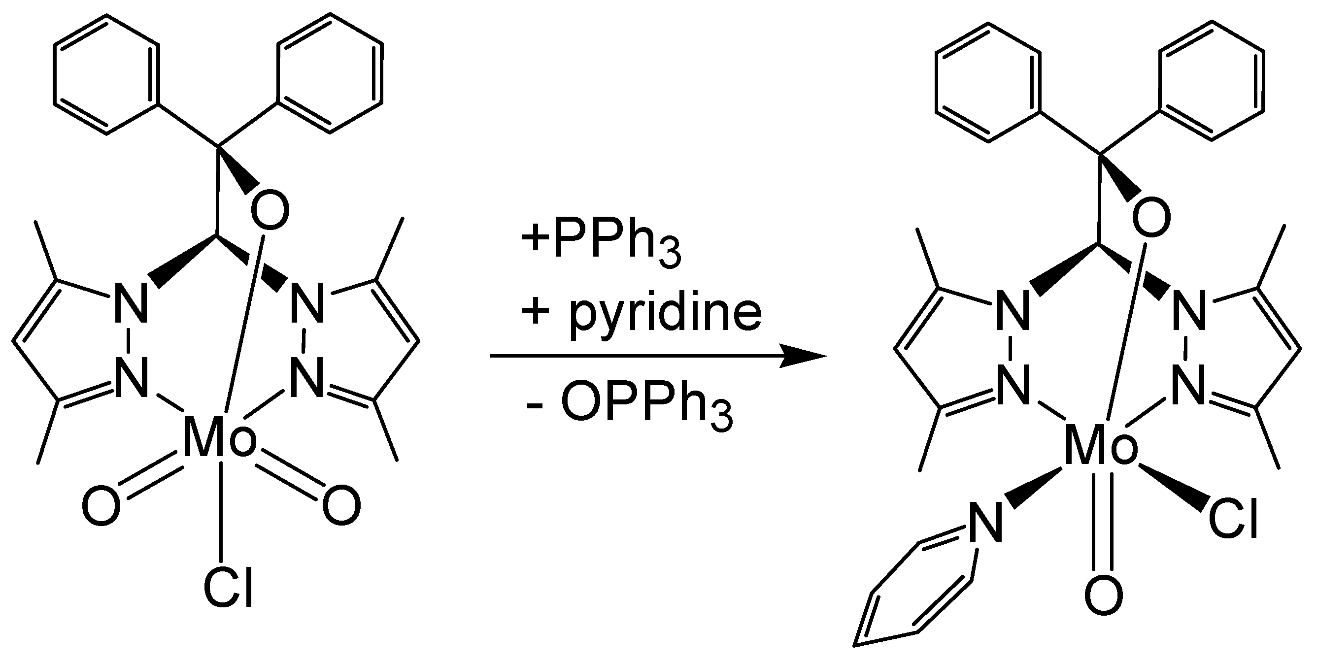 - Hoffmann, J.T.; Einwaechter, S.; Chohan, B.S.; Basu, P.; Carrano, C.J. Isomerization and Oxygen Atom Transfer Reactivity in Oxo−Mo Complexes of Relevance to Molybdoenzymes. Inorg. Chem. 2004, 43, 7573–7575. [Google Scholar] [CrossRef]