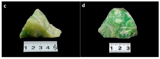 - Xu, Y.R. Study on Gemological and Mineralogical Characteristics of Hydrogrossular Jade and Vesuvianite Jade from the Tawmaw Area, Myanmar. Master’s Thesis, China University of Geosciences (Beijing), Beijing, China, 2014. [Google Scholar]