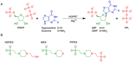 Zayats, E.A.; Abramchik, Y.A.; Kostromina, M.A.; Timofeev, V.I.; Shevtsov, M.B.; Mishin, A.V.; Fateev, I.V.; Karanov, A.A.; Sharafutdinova, A.R.; Arnautova, A.O.; et al. Interference of Sulphonate Buffering Agents with E. coli Hypoxanthine-Guanine Phosphoribosyltransferase Active Site Functioning: A Crystallographic and Enzymological Study. Crystals 2025, 15, 874. https://doi.org/10.3390/cryst15100874