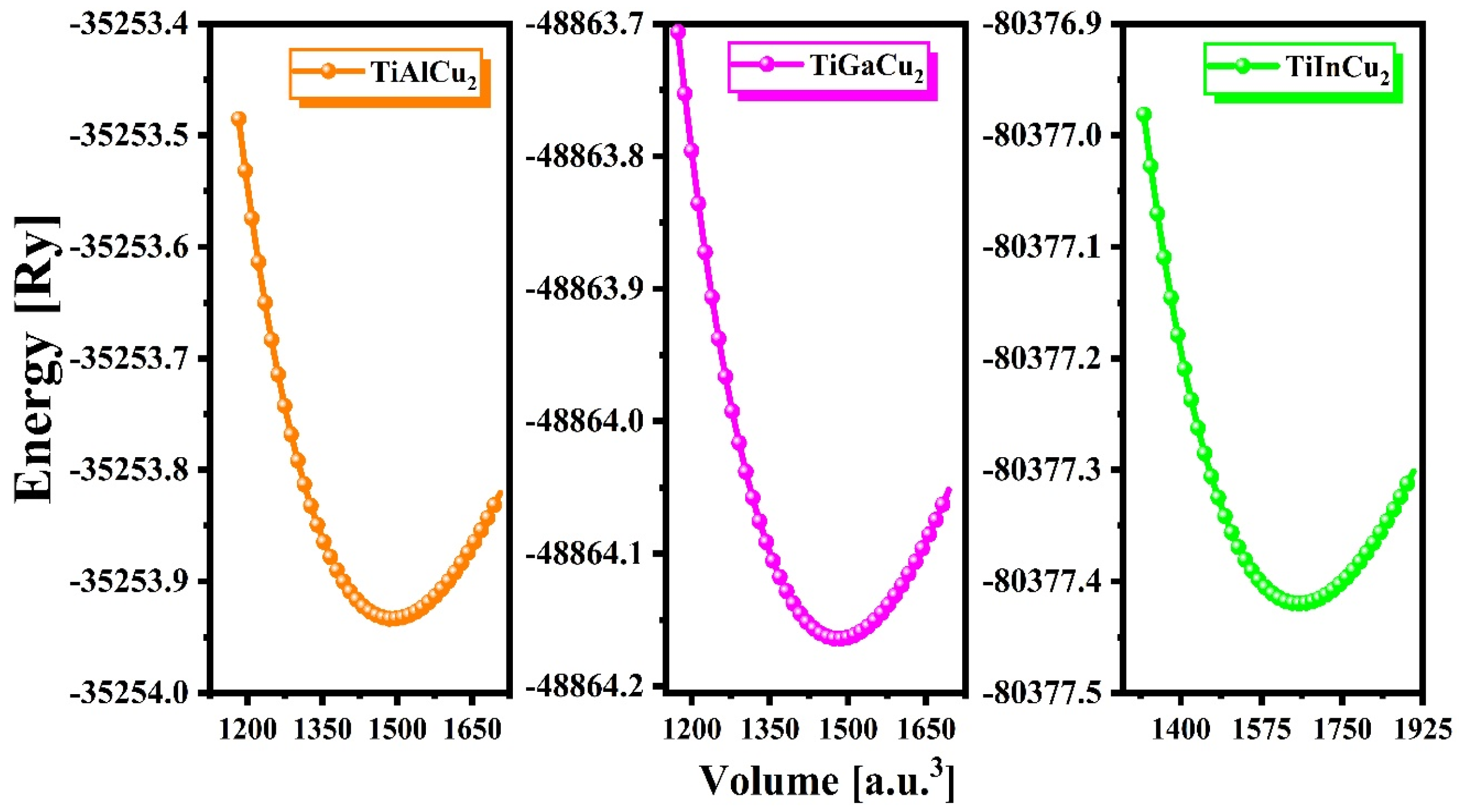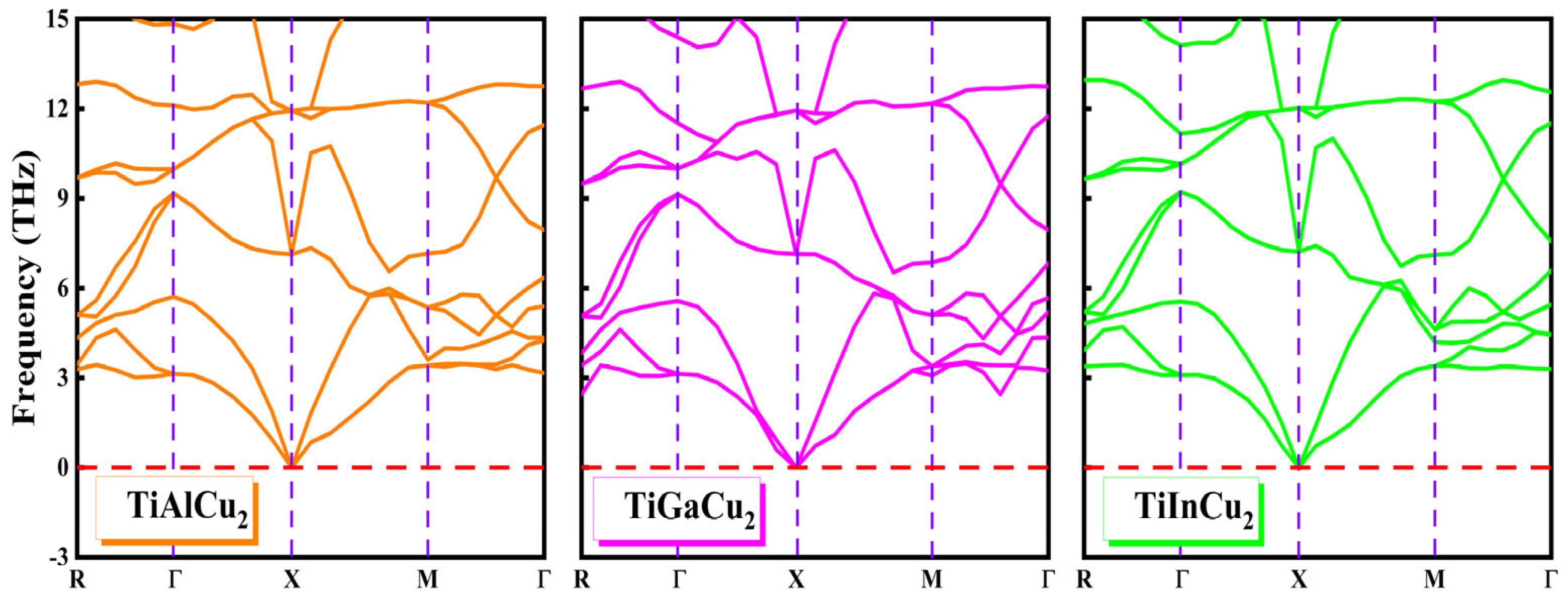 APA StyleAbbas, Z., Parveen, A., Elsaeedy, H. I., Mahjoub Said, N., & Khan, M. T. (2025). Exploring Structural, Optoelectronic, Phonon, Spintronic, and Thermodynamic Properties of Novel Full-Heusler Compounds TiMCu2 (M = Al, Ga, In): Eco-Friendly Materials for Next-Generation Renewable Energy Technologies. Crystals, 15(10), 876. https://doi.org/10.3390/cryst15100876