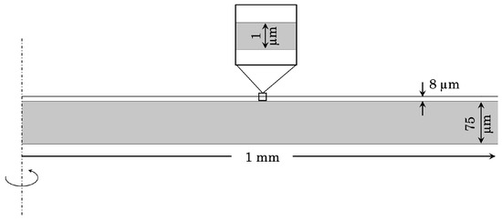 We consider the geometry shown in Figure 3 inspired from benchmark#2 listed in [38], corresponding to a thin HTS disk above a conductive substrate made of iron ( m), embedded in a uniform vertical magnetic flux density with sinusoidal trend with mT and Hz, corresponding to ms. The incident electric field is constructed analytically from Equation (1), resulting in the following: