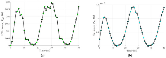 Analytical power-law models expressing are usually extracted to characterize the superconducting cables [37]. Following [19], the integral in Equation (21) is evaluated during the second half of the first excitation period to disregard transient effects.