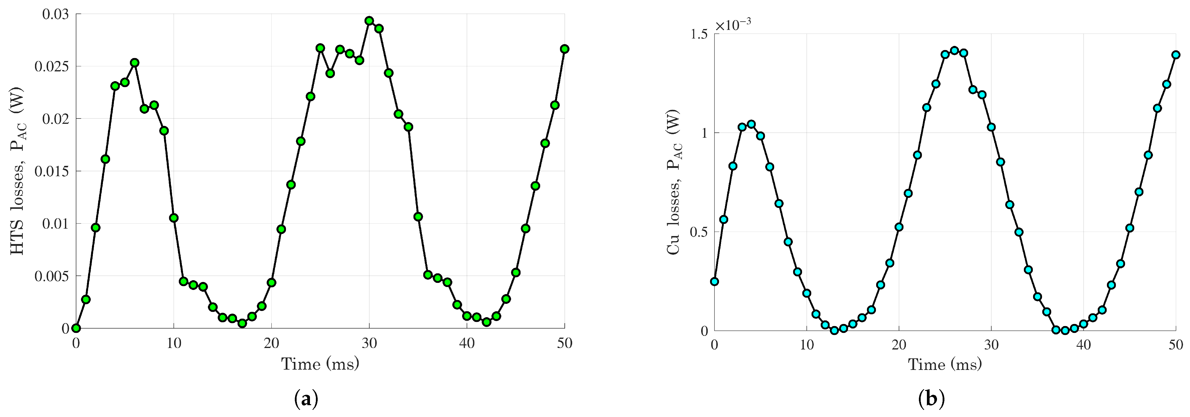 - Sirois, F.; Grilli, F.; Morandi, A. Comparison of Constitutive Laws for Modeling High-Temperature Superconductors. IEEE Trans. Appl. Supercond. 2019, 29, 8000110. [Google Scholar] [CrossRef]