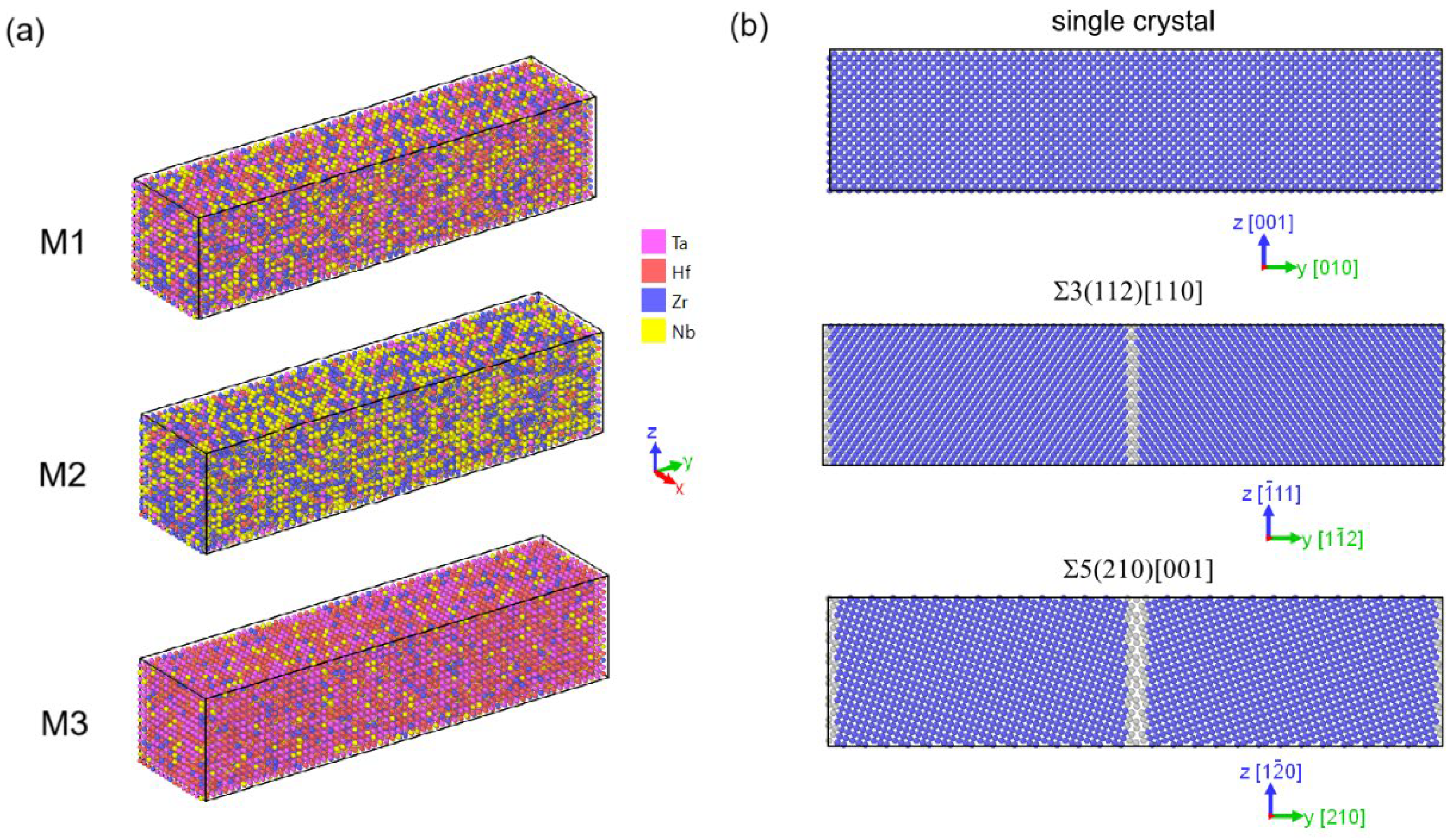 APA StyleBabicheva, R. I., Kazakov, A. M., & Korznikova, E. A. (2025). Assessment of the Influence of Chemical Composition, Atomic Distribution, and Grain Boundaries on Heat Transfer in Refractory High-Entropy Alloys Hf–Nb–Ta–Zr Based on Atomistic Simulation. Crystals, 15(10), 880. https://doi.org/10.3390/cryst15100880