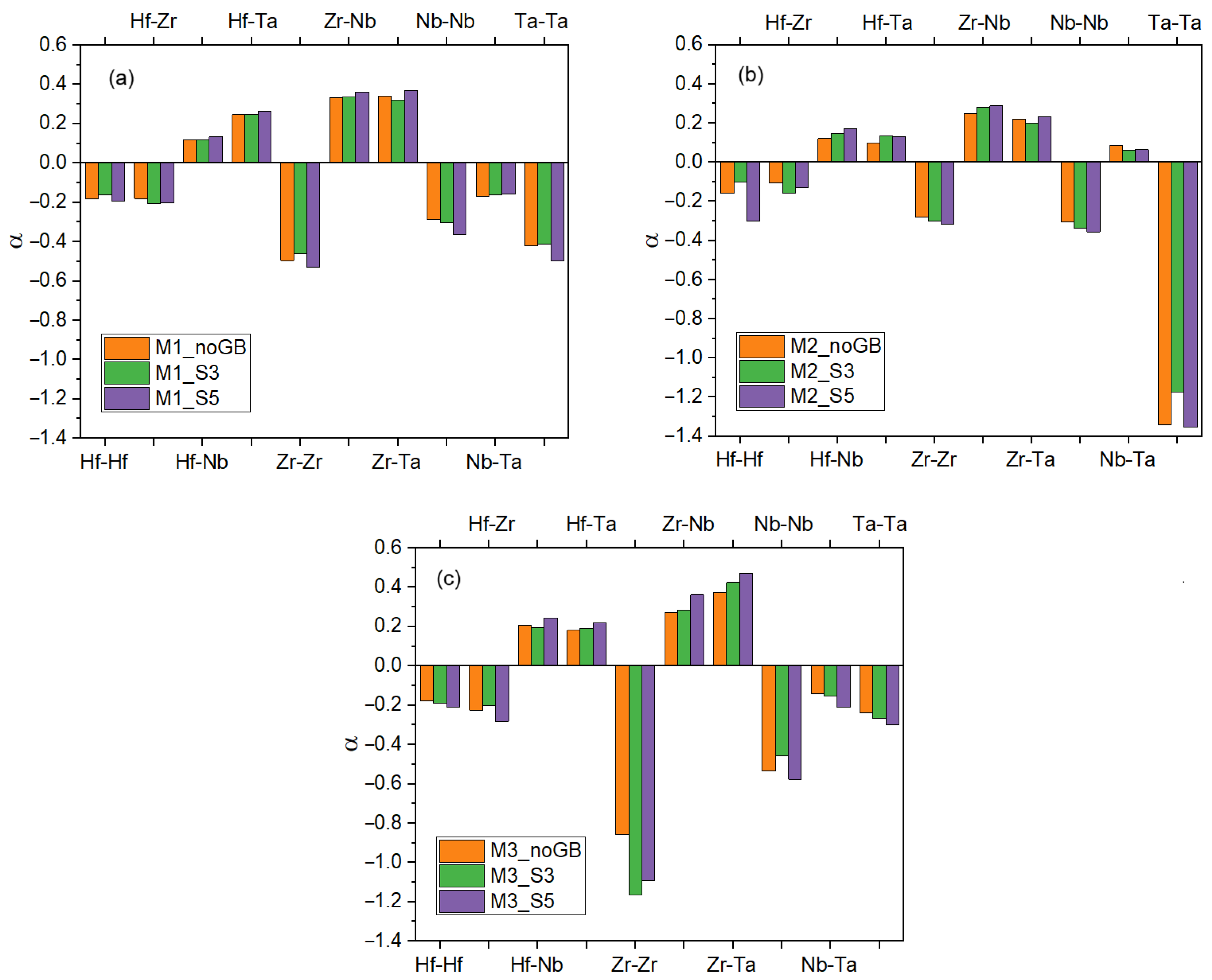 - Huang, X.; Liu, L.; Duan, X.; Liao, W.; Huang, J.; Sun, H.; Yu, C. Atomistic simulation of chemical short-range order in HfNbTaZr high entropy alloy based on a newly-developed interatomic potential. Mater. Des. 2021, 202, 109560. [Google Scholar] [CrossRef]