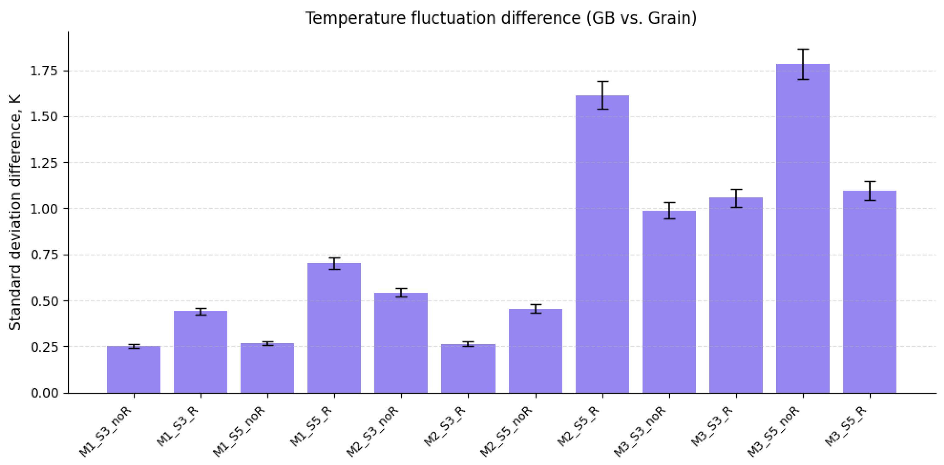 Babicheva, R.I.; Kazakov, A.M.; Korznikova, E.A. Assessment of the Influence of Chemical Composition, Atomic Distribution, and Grain Boundaries on Heat Transfer in Refractory High-Entropy Alloys Hf–Nb–Ta–Zr Based on Atomistic Simulation. Crystals 2025, 15, 880. https://doi.org/10.3390/cryst15100880