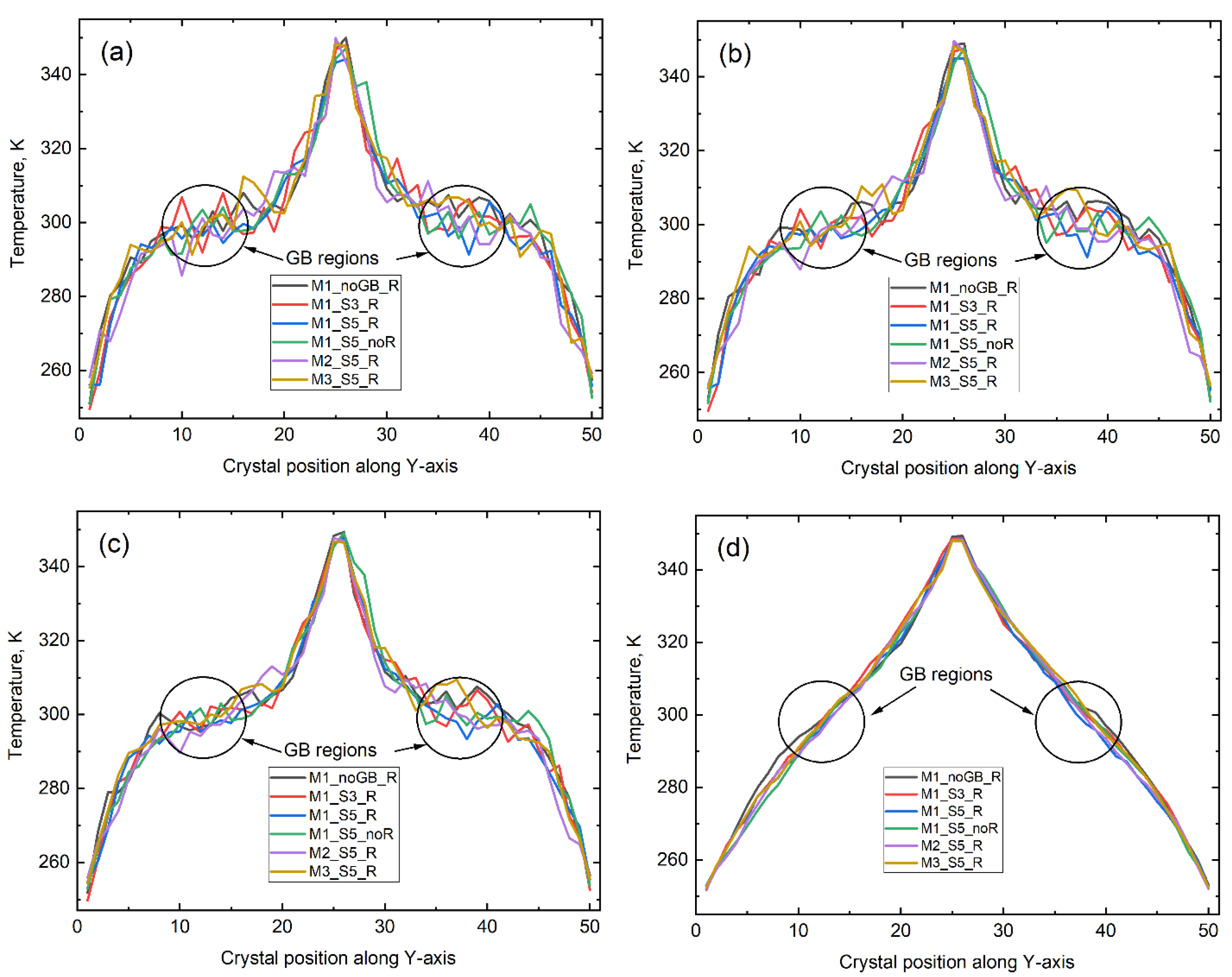 - Hajjiah, A. Modeling the heat conductivity across bulk grain and grain boundaries in perovskite solar cells. Opt. Quantum Electron. 2025, 57, 215. [Google Scholar] [CrossRef]