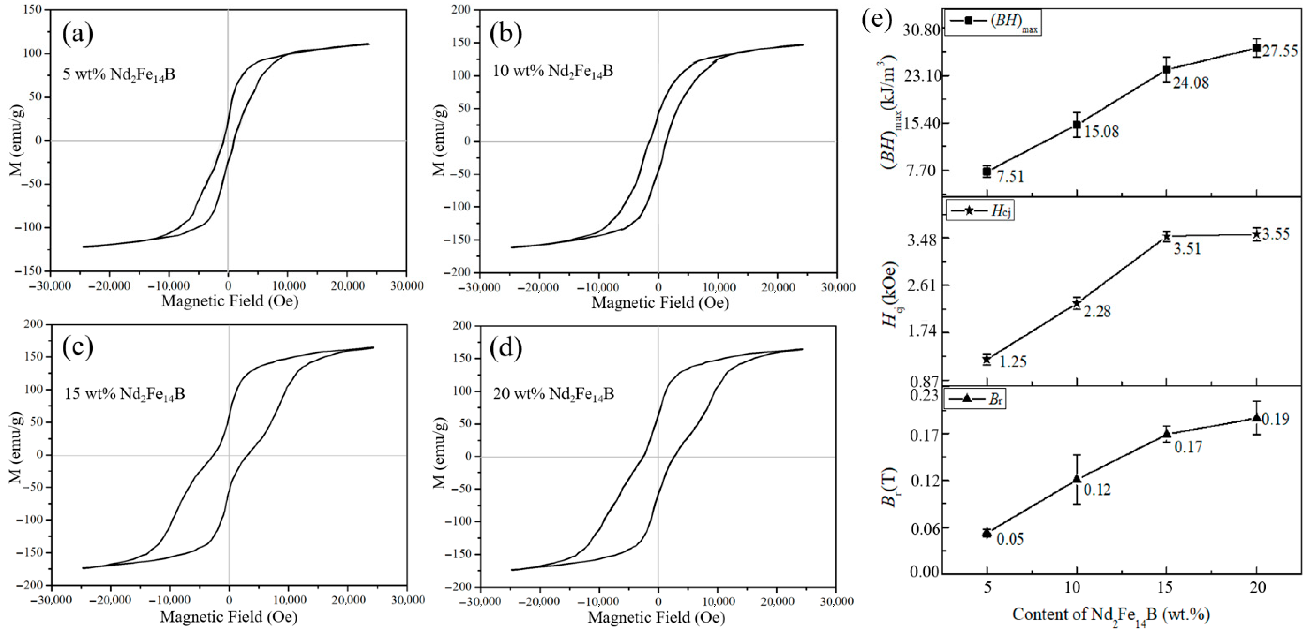 Section 3.2, it can be seen that no new phases were generated during the sintering process. Therefore, the magnetic properties of composite are closely related to the amount of Nd