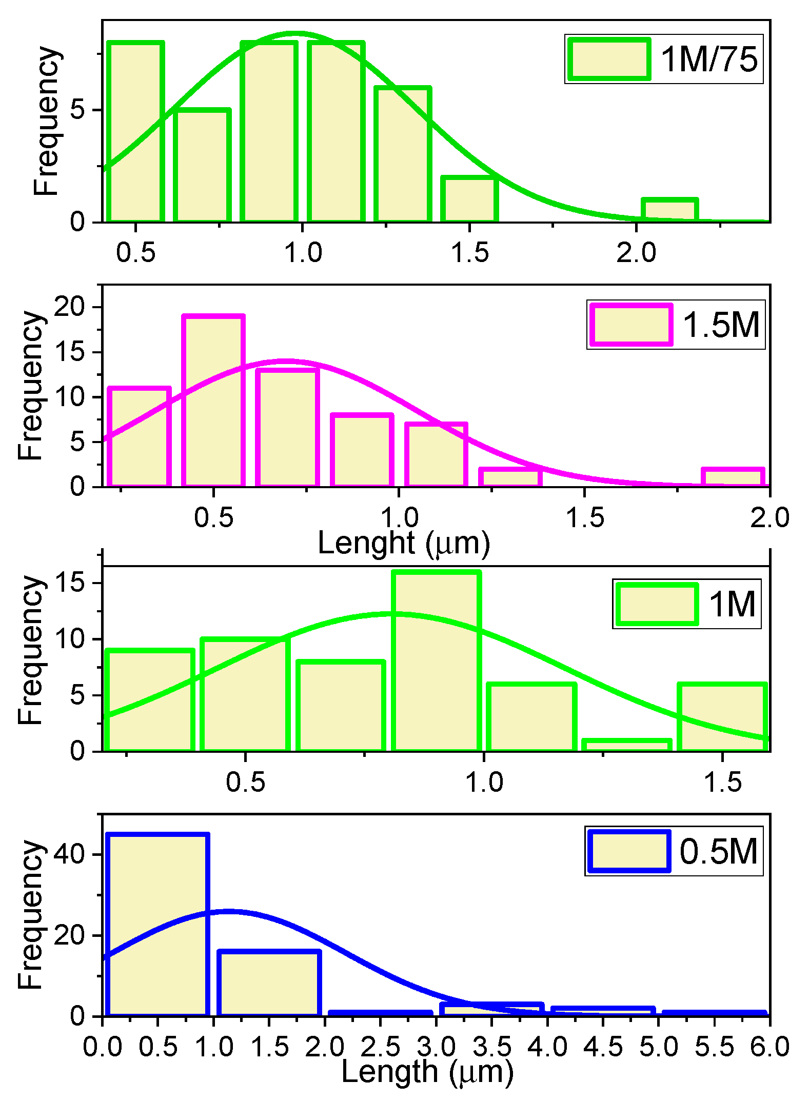 Figure 6. Histograms of length of BaCO3 nanoparticles.