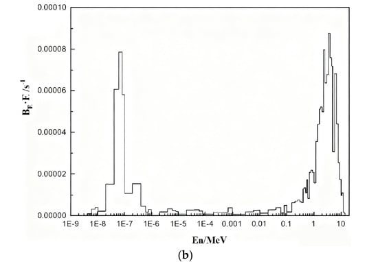 (a) Schematic diagram of the neutron shielding experiment [29]. Adapted from ‘Microstructure, thermophysical properties and neutron shielding properties of Gd/316 L composites for spent nuclear fuel transportation and storage’, Materials Today Communications, 1 December 2023, with permission from Elsevier. (b) The 252Cf slowed neutron energy spectrum of the experiment [22]. Reprinted from [Le, Y.; et al. Nanotechnol. Rev. 13, 20240007 (2024)], under a CC BY 4.0 license.