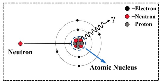 The process by which rare earth elements undergo neutron capture reactions (Figure 13) consists mainly of two stages: capture and de-excitation. First, the nucleus of a rare earth atom captures a thermal neutron (low-energy neutron), forming a compound nucleus in an excited state. Subsequently, this compound nucleus de-excites to a stable ground state by emitting one or multiple high-energy photons (γ-rays). The emitted γ-rays are referred to as “secondary γ-rays” or “capture γ-rays”. The neutron absorption cross-section (σ) is a physical quantity that characterizes the probability of an interaction occurring between an atomic nucleus and a neutron. It can be understood as the effective cross-sectional area of the nucleus acting as a “target”. A larger cross-section indicates a higher probability of a reaction occurring between the neutron and the nucleus. Therefore, in traditional boron-containing neutron shielding materials—whether metal-based or polymer-based—shielding performance relies on the high neutron absorption cross-section of 10B. However, the neutron reaction with 10B (n, α) [52]: