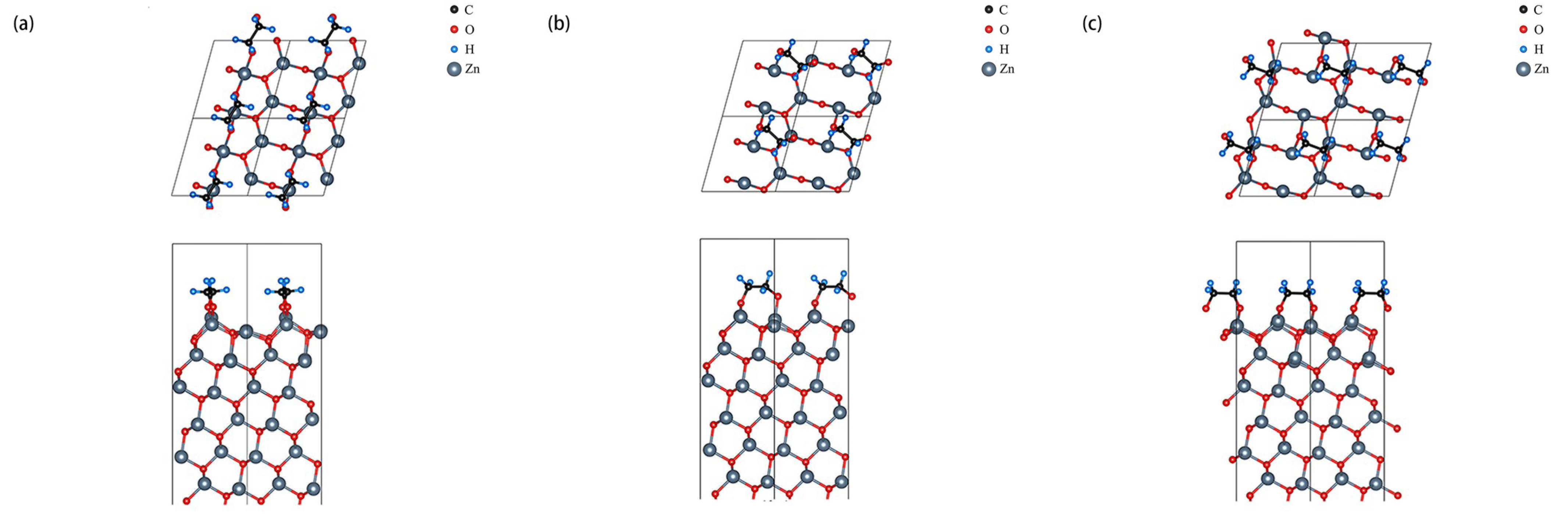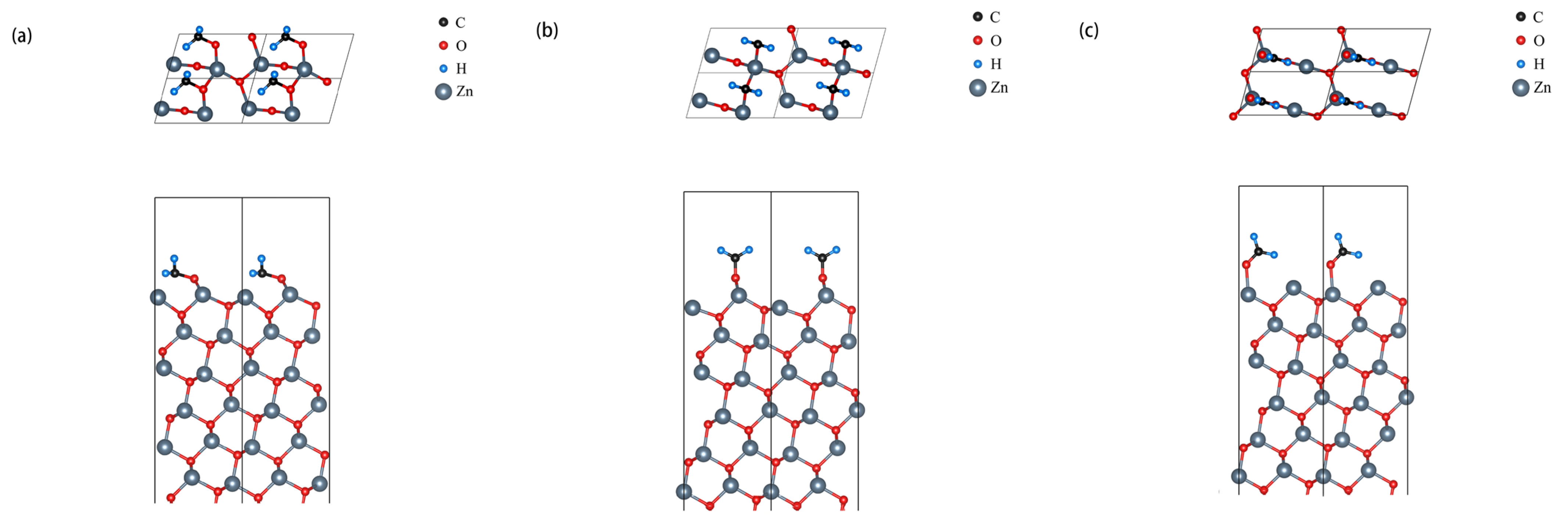 - Chen, D.; Liu, Y.; Yuan, Y.J. Investigation of Formaldehyde Adsorption on ZnO(0001) Surface by Density Functional The-Ory. Russ. J. Phys. Chem. 2020, 94, 423–428. [Google Scholar] [CrossRef]