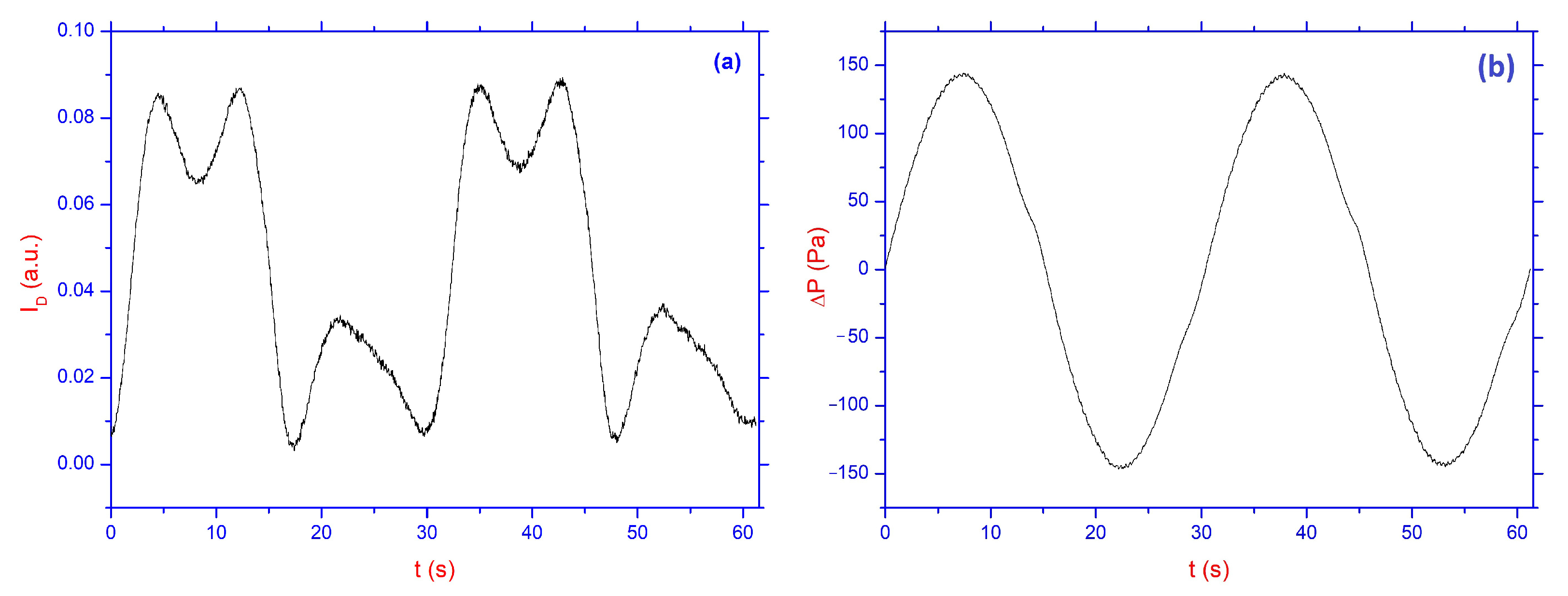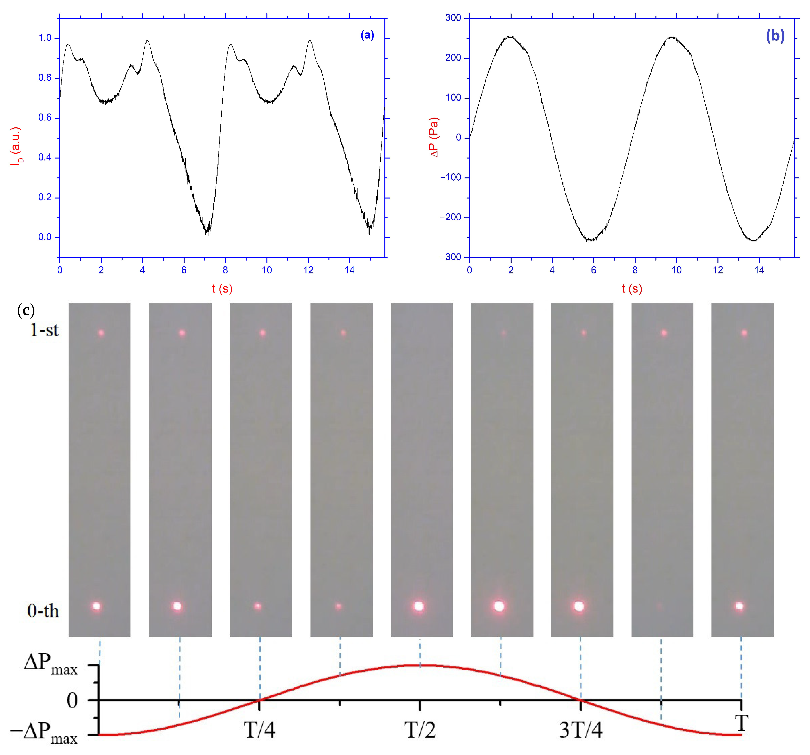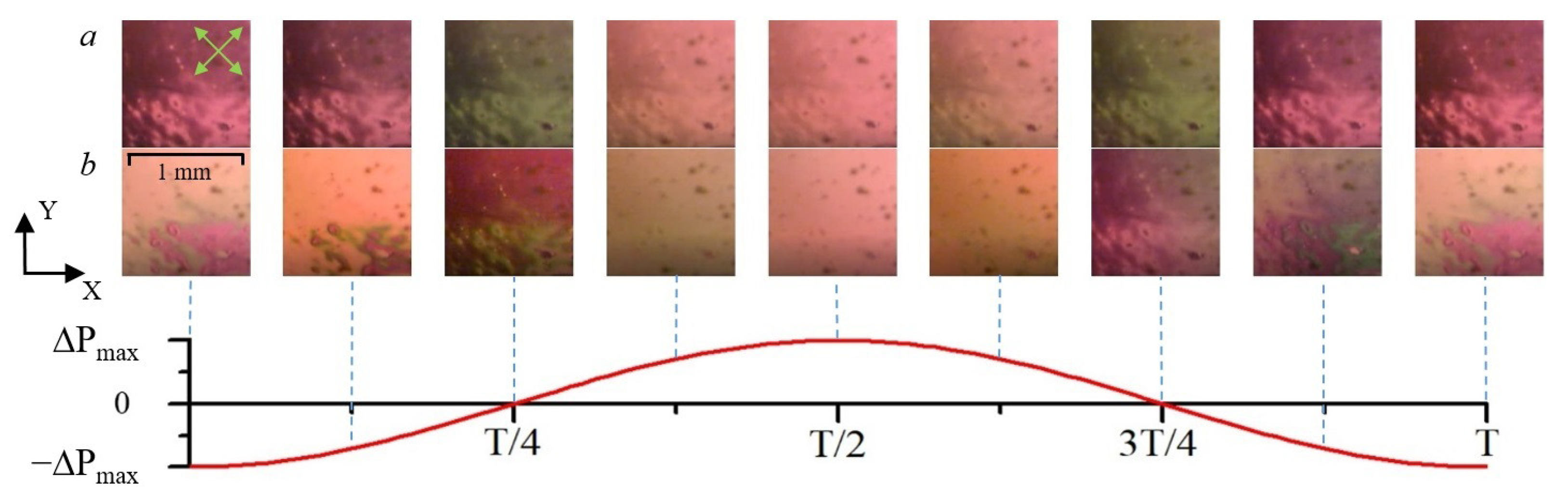 Hz. The quasi-steady flow approximation allows us to analyze all the obtained data, assuming that the maximum change in the intensity of polarized light depends mostly on the value of the maximum pressure difference.