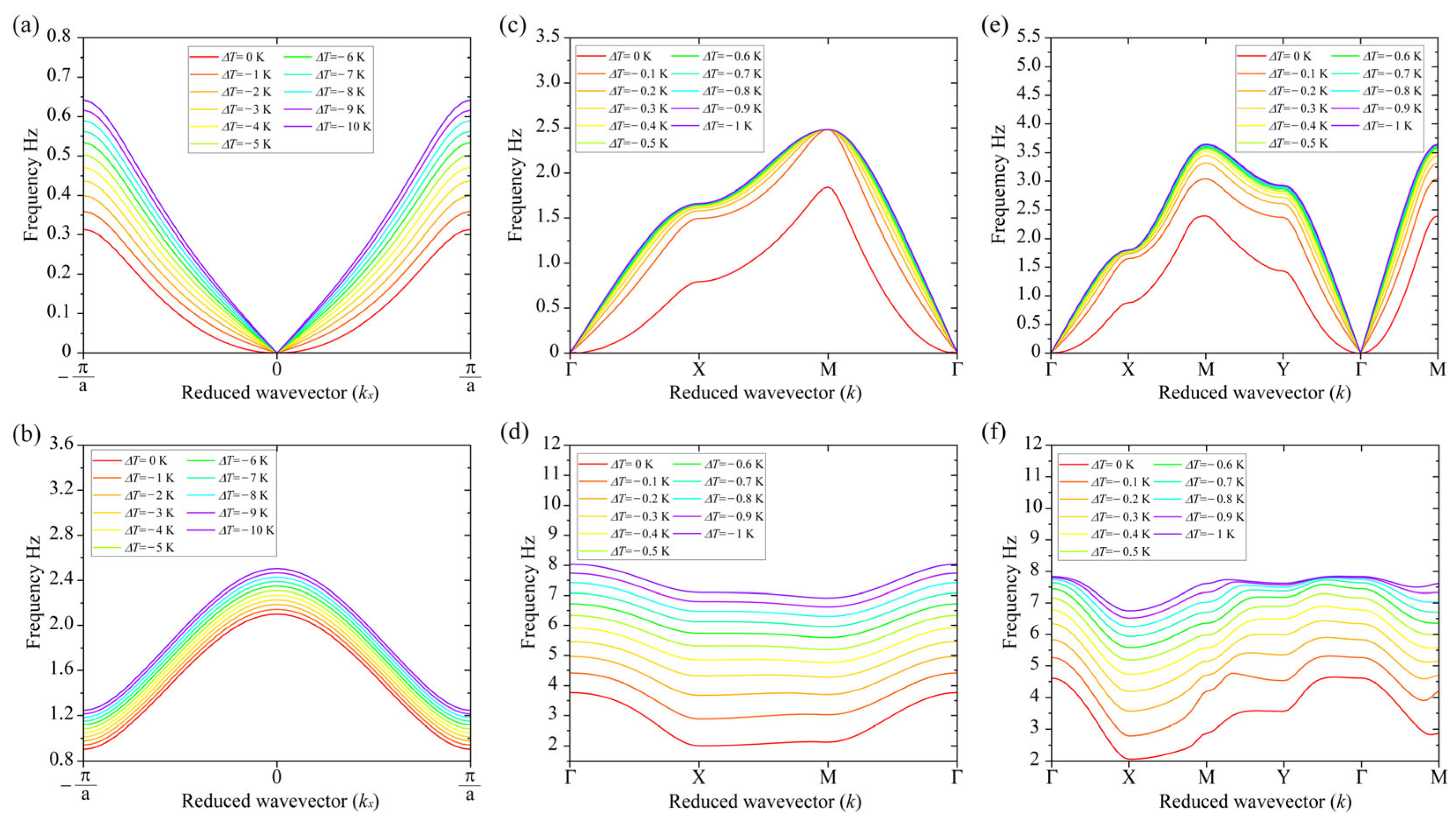 - Huang, Z.G.; Wu, T.T. Temperature effect on the bandgaps of surface and bulk acoustic waves in two-dimensional phononic crystals, Ultrasonics, Ferroelectrics and Frequency Control. IEEE Trans. Ultrason. Ferroelectr. Freq. Control. 2005, 52, 365–370. [Google Scholar] [CrossRef] [PubMed][Green Version]