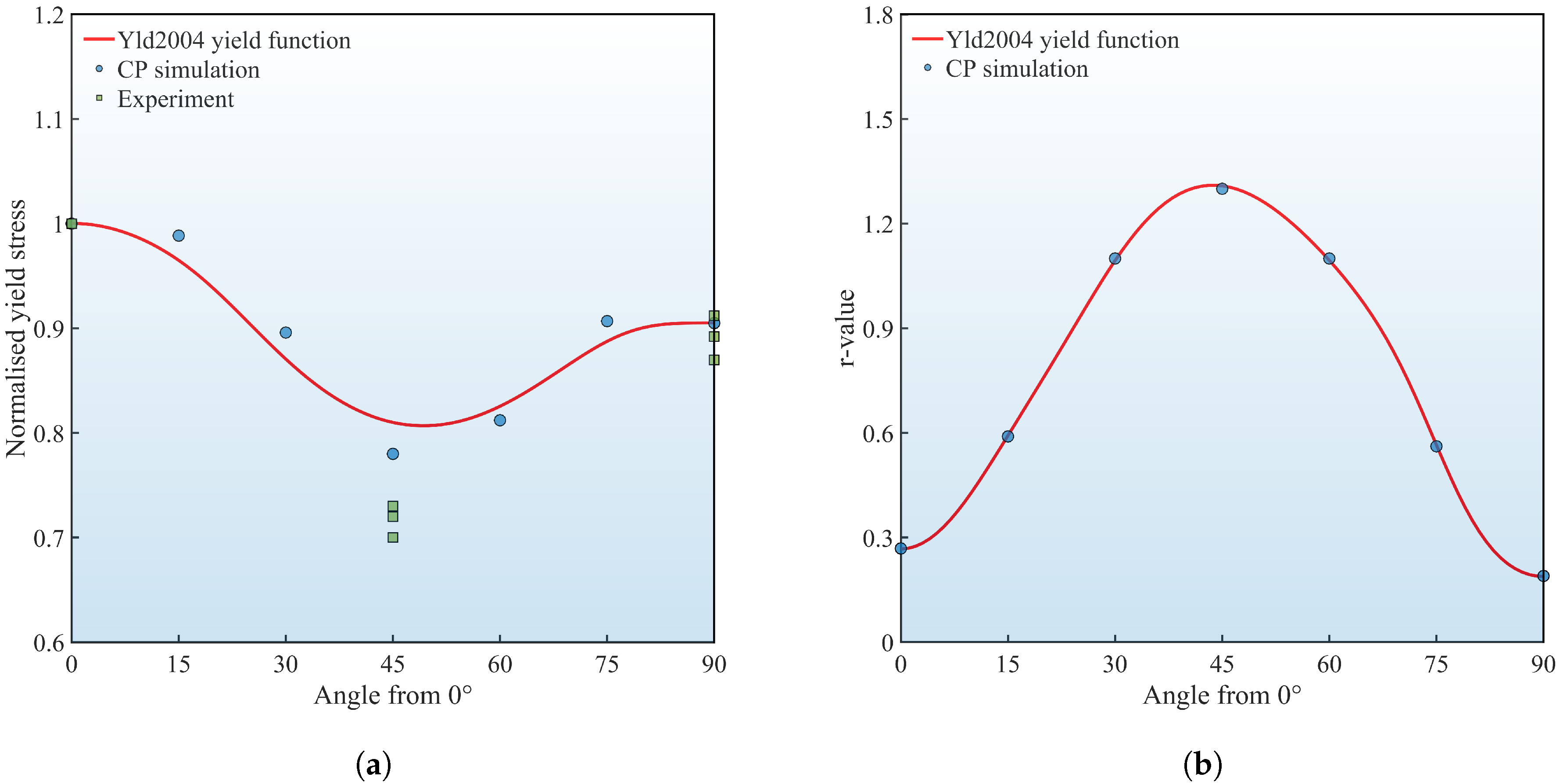 - Liu, W.; Huang, J.; Pang, Y.; Zhu, K.; Li, S.; Ma, J. Multi-scale modelling of evolving plastic anisotropy during Al-alloy sheet forming. Int. J. Mech. Sci. 2023, 247, 108168. [Google Scholar] [CrossRef]