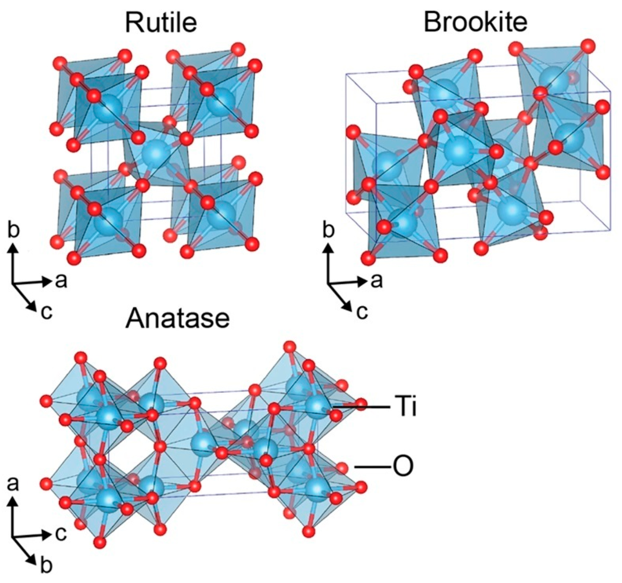- Zhang, J.; Zhou, P.; Liu, J.; Yu, J. New understanding of the difference of photocatalytic activity among anatase, rutile and brookite TiO2. Phys. Chem. Chem. Phys. 2014, 16, 20382–20386. [Google Scholar] [CrossRef]