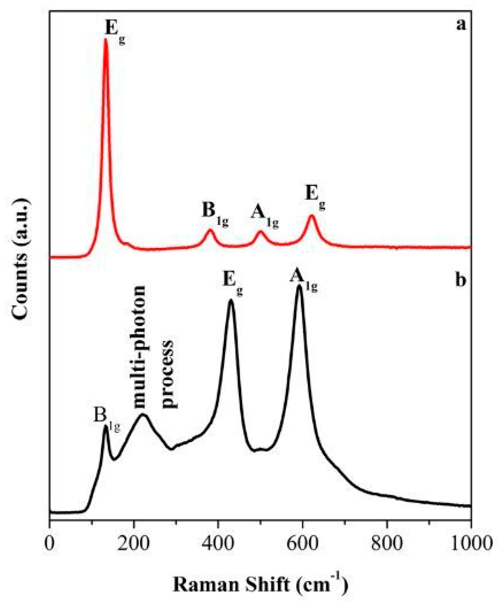 - Balachandran, U.; Eror, N.G. Raman spectra of titanium dioxide. J. Solid State Chem. 1982, 42, 276–282. [Google Scholar] [CrossRef]