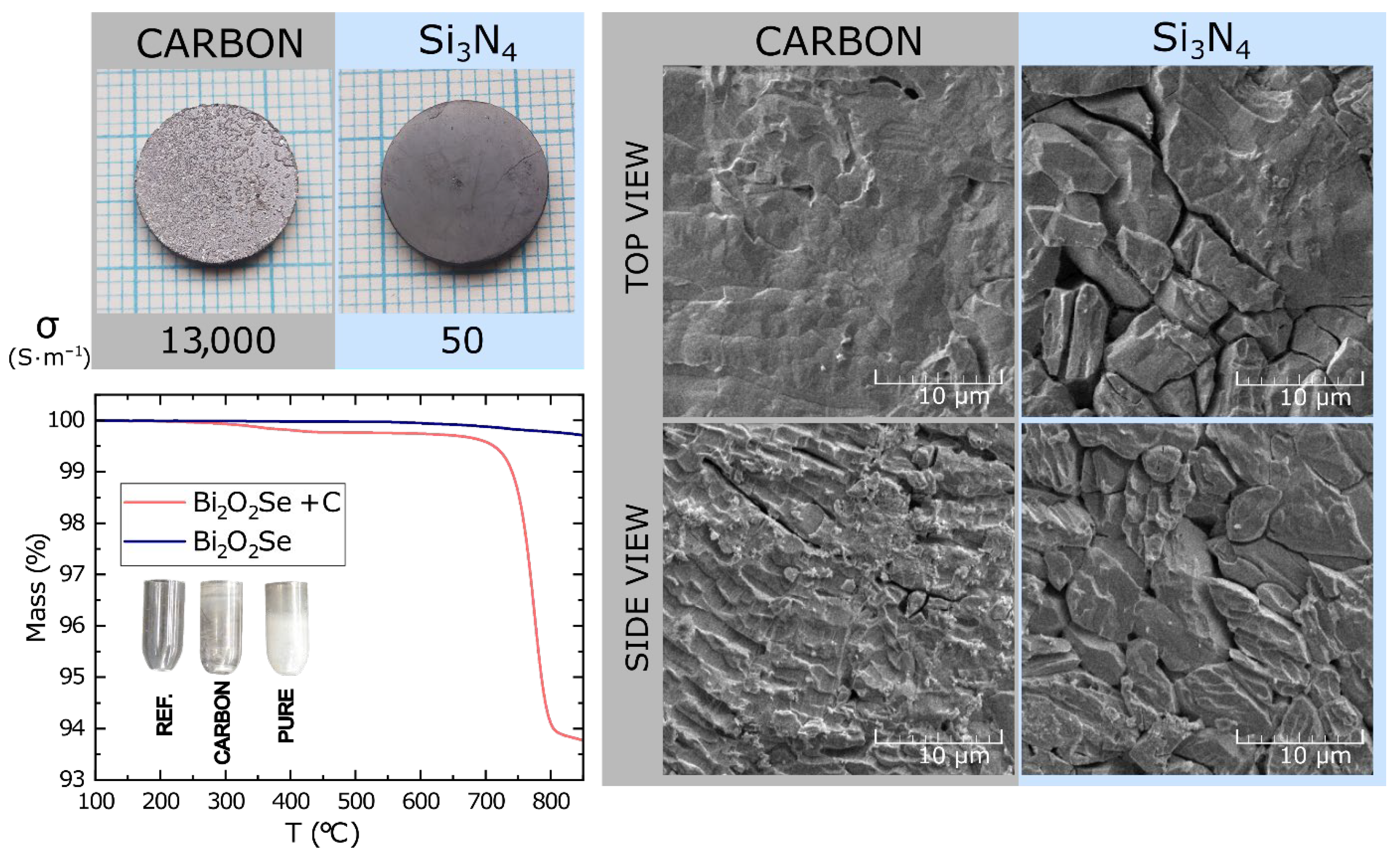 - Wei, T.; Xu, B.; Ji, X. Enhanced thermoelectric properties of Bi2O2Se ceramics by Bi deficiencies. Eur. Phys. J. B 2019, 92, 17. [Google Scholar] [CrossRef]