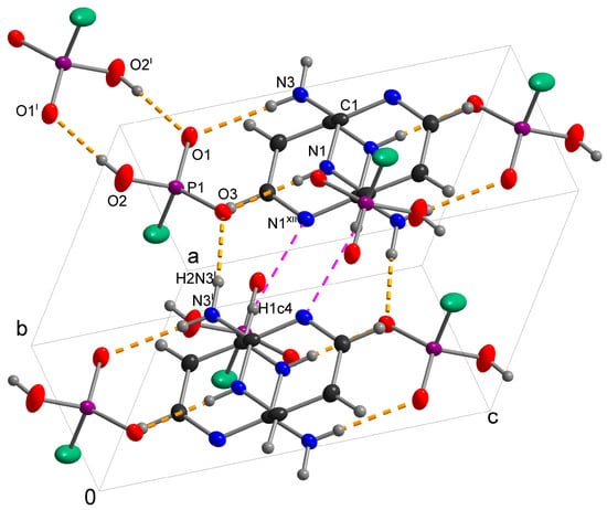 - Matulková, I.; Fábry, J.; Němec, I.; Císařová, I.; Vaněk, P. Migrating hydrogen in 2,4,6-triaminopyrimidinium(1+)x hydrogen trioxofluorophosphate(-)x monohydrate/2,4,6-triaminopyrimidinium(2+)1–x trioxofluorophosphate(2–)1–x monohydrate (0.0 < x < 0.73) with changing temperature. Acta Crystallogr. Sect. B Struct. Sci 2017, 73, 1114–1124. [Google Scholar] [CrossRef]