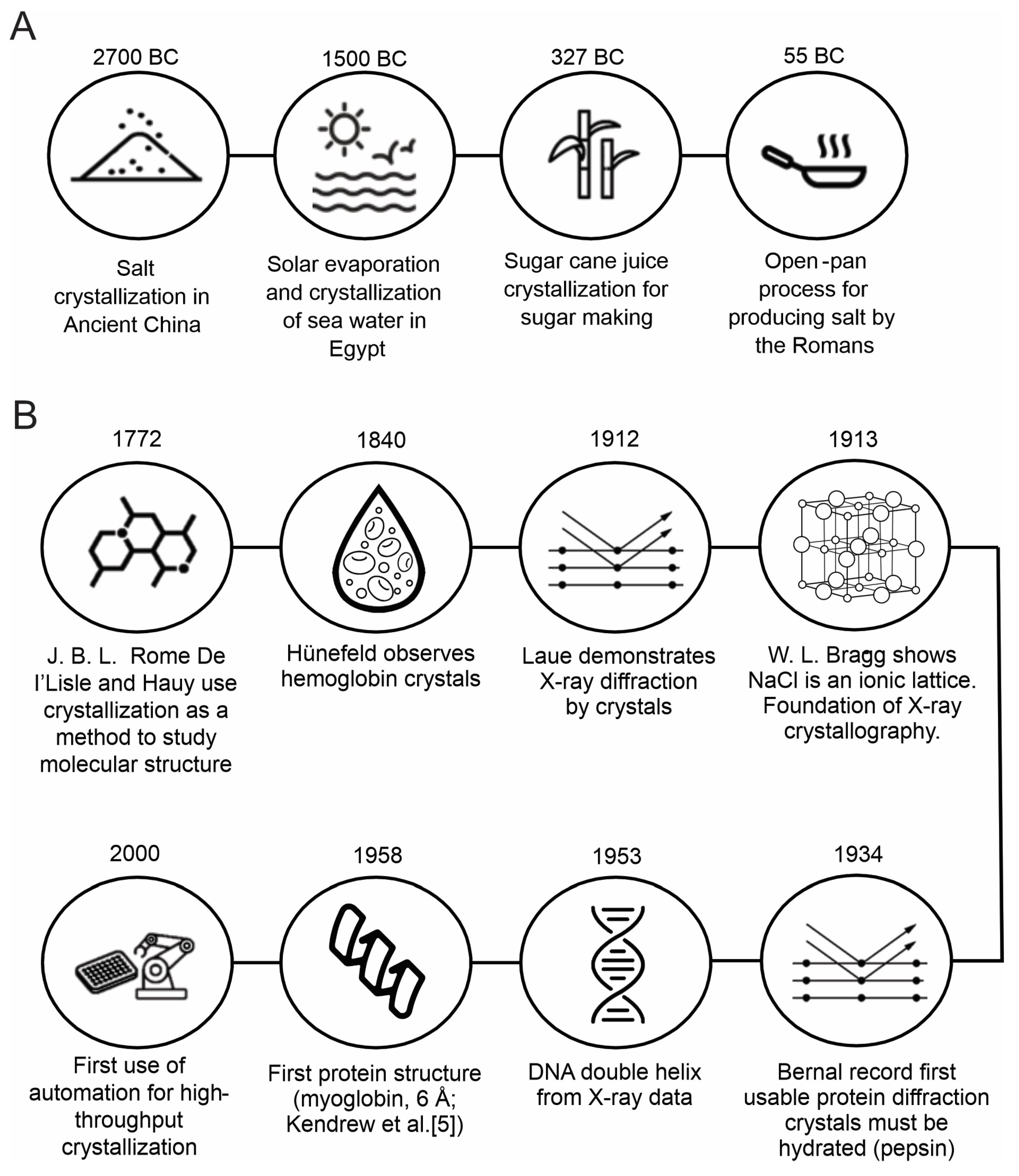 - Schoen, H.M.; Grove, C.S.; Palermo, J.A. The early history of crystallization. J. Chem. Educ. 1956, 33, 373. [Google Scholar] [CrossRef]