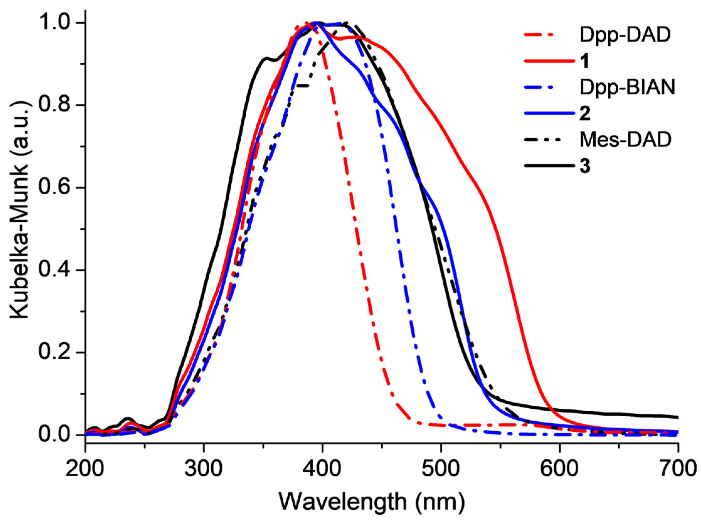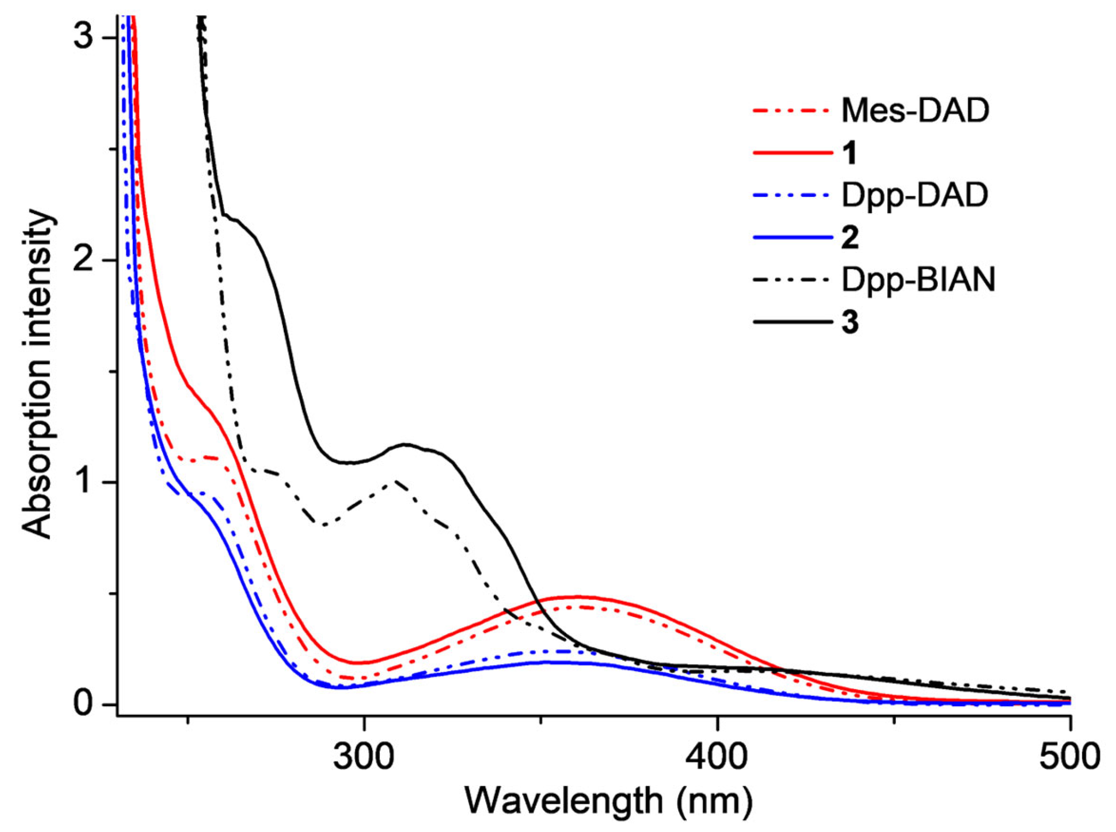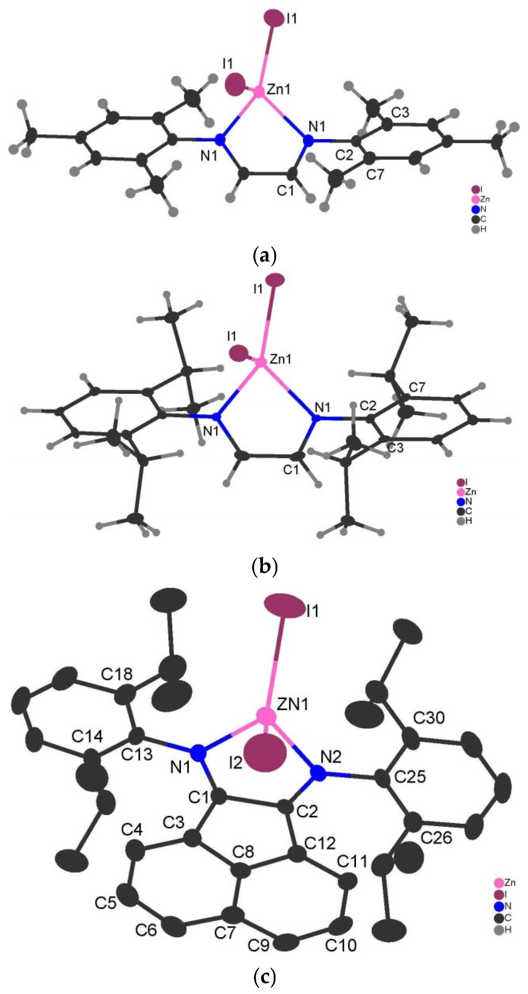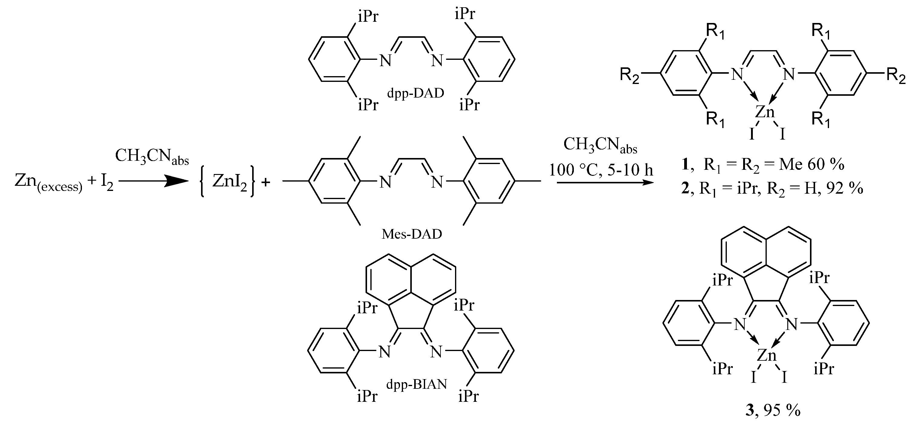 2.1. Synthesis and Characterization [(Mes-DAD)ZnI2] (1), [(Dpp-DAD)ZnI2] (2), [(Dpp-BIAN)ZnI2] (3)