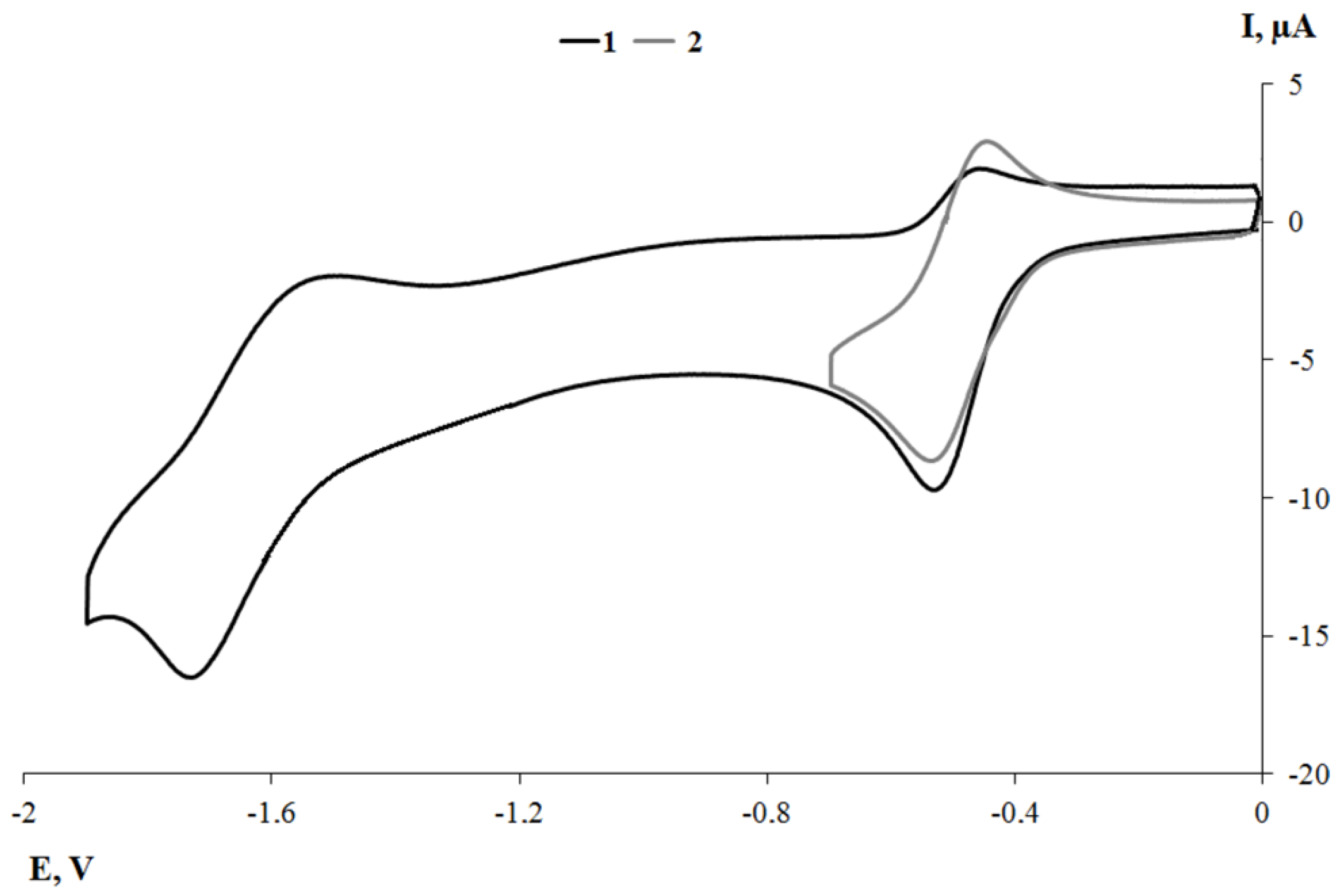 2.4. Cyclic Voltammetry of Obtained Complexes