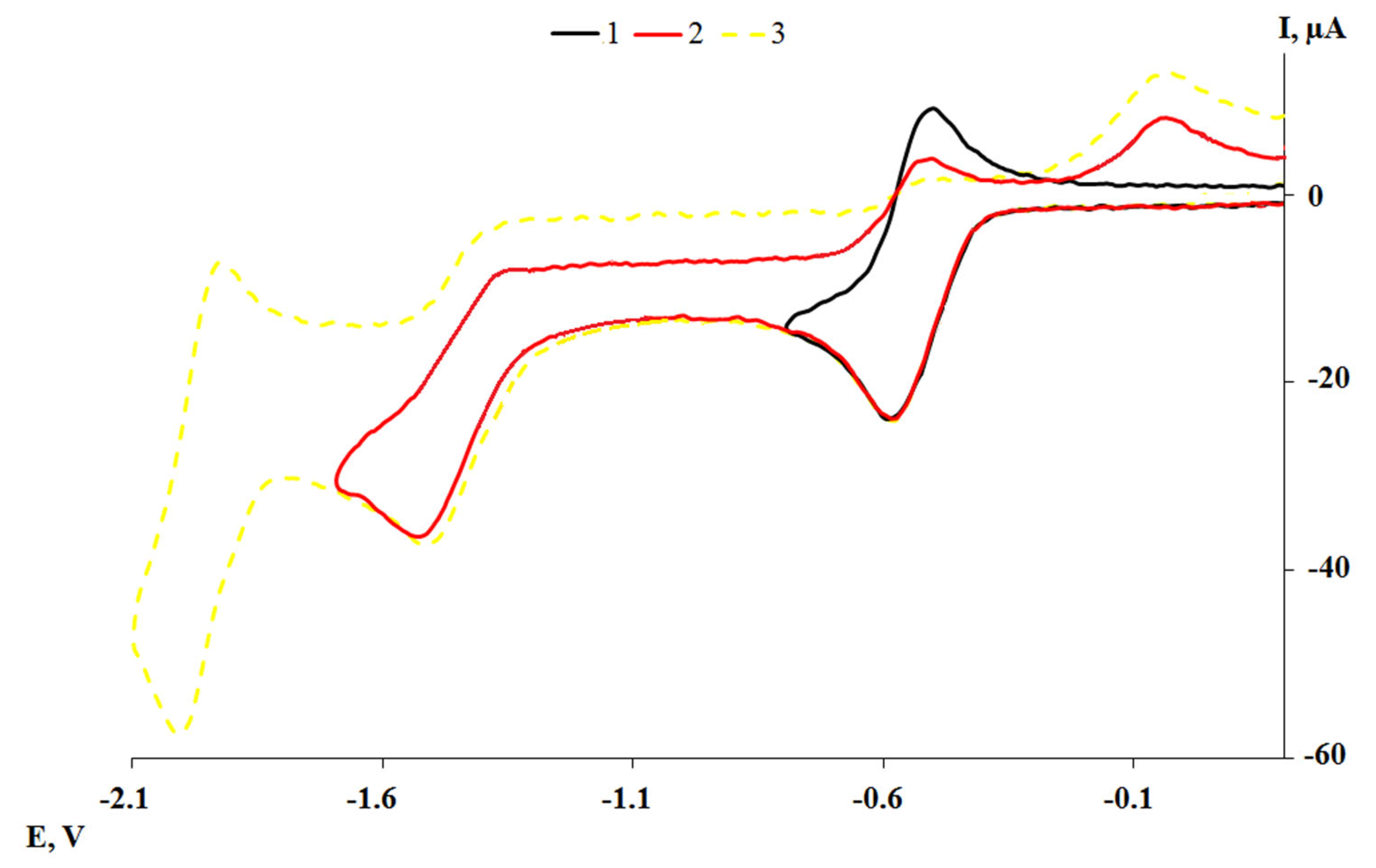 | Compound | Ered11/2, V | Ia/Ic | Ered21/2, V | Ia/Ic | Ered31/2, V | Ia/Ic | Eoxp, V |