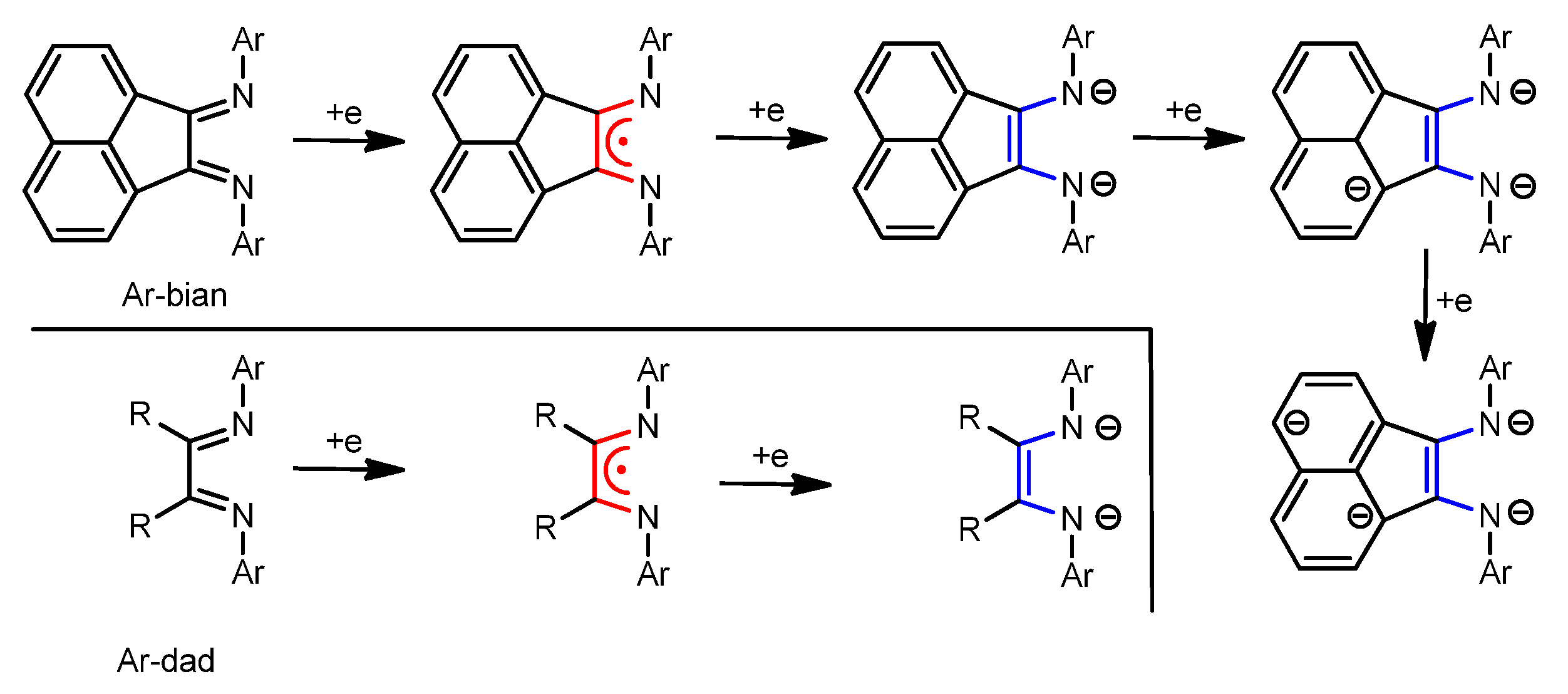 | (Ar-BIAN)0 | (Ar-DAD)0 | (Ar-BIAN)− | (Ar-DAD)− | (Ar-BIAN)2− | (Ar-DAD)2− | |