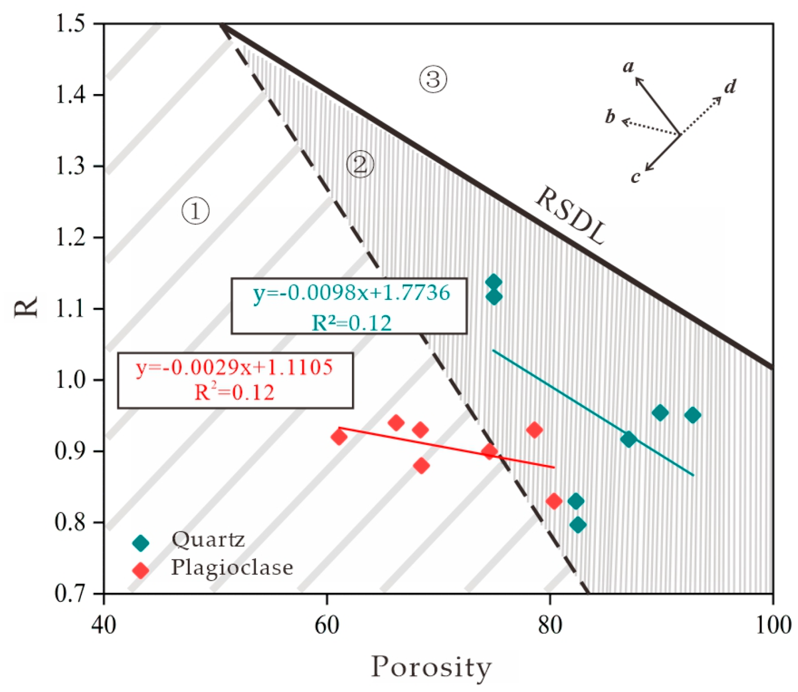 - Jerram, D.A.; Cheadle, M.J.; Philpotts, A.R. Quantifying the building blocks of igneous rocks: Are clustered crystal frameworks the foundation. J. Petrol. 2003, 44, 2033–2051. [Google Scholar] [CrossRef]