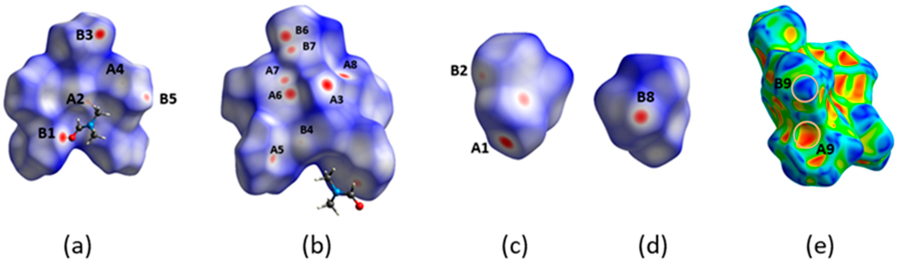 3.6. Supramolecular Features in the Crystal Structures of 1 and 2·DMF