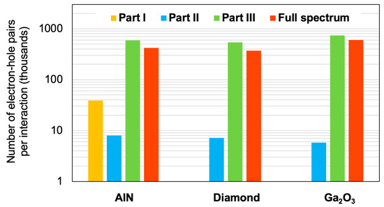 where is the electron charge and the energy required to create an electron-hole pair, , is given in Table 1. The values of calculated for AlN, diamond and β-Ga2O3 are given in Table 7.