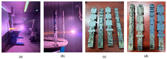 Before the thermal deposition process, samples were preheated up to 300 °C to reduce the thermal tension, which could lead to delamination of the coatings. The deposition temperature used for the current application was set to approximately 10,000 °C, and the spraying distance, between the spraying gun and sample, was set to 150 mm, for both powder applications.