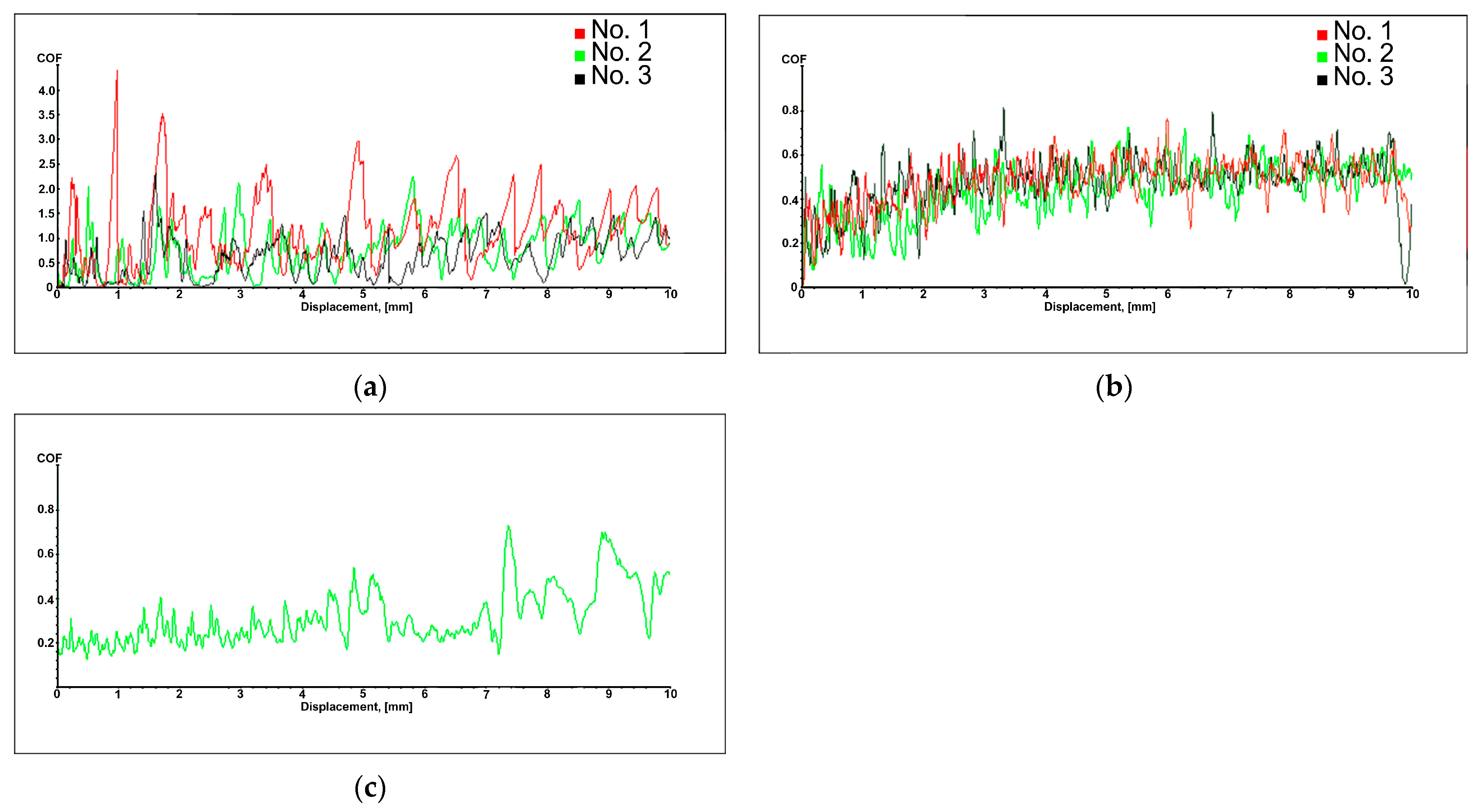 - For rotational motion, the friction test, on the other hand, the samples with Metco 111 achieved the highest COF value of 0.7, while Metco 42C achieved a COF value of 0.6, similar to that of the translational friction test. The base material achieved a COF value of 0.5, higher than the value obtained in the translational friction test. For improving rotational friction properties, Metco 111 ceramic powder is recommended for use. Considering the COF results of the friction test, which are slightly higher than the COF results of the base material, both powders offer improved wear resistance properties in comparison with the base material properties.