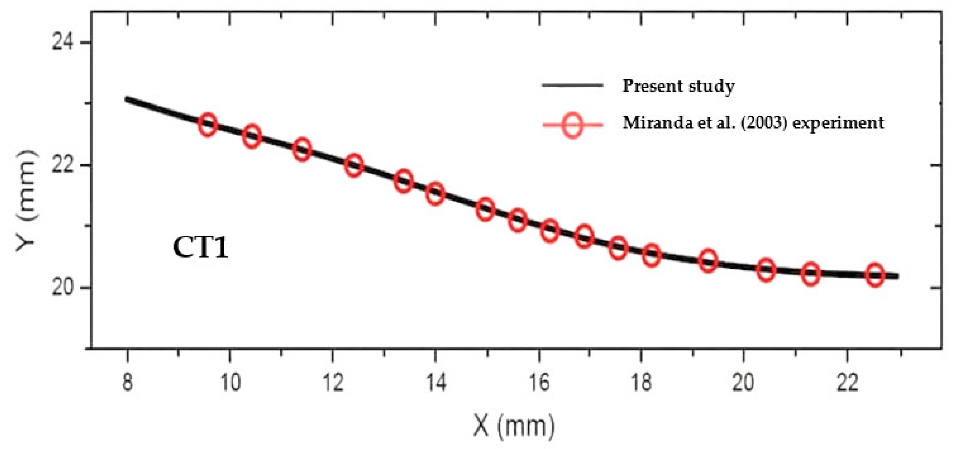 - Oplt, T.; Vojtek, T.; Kubíček, R.; Pokorný, P.; Hutař, P. Numerical modelling of fatigue crack closure and its implication on crack front curvature using ΔCTODp. Int. J. Fatigue 2023, 171, 107570. [Google Scholar] [CrossRef]