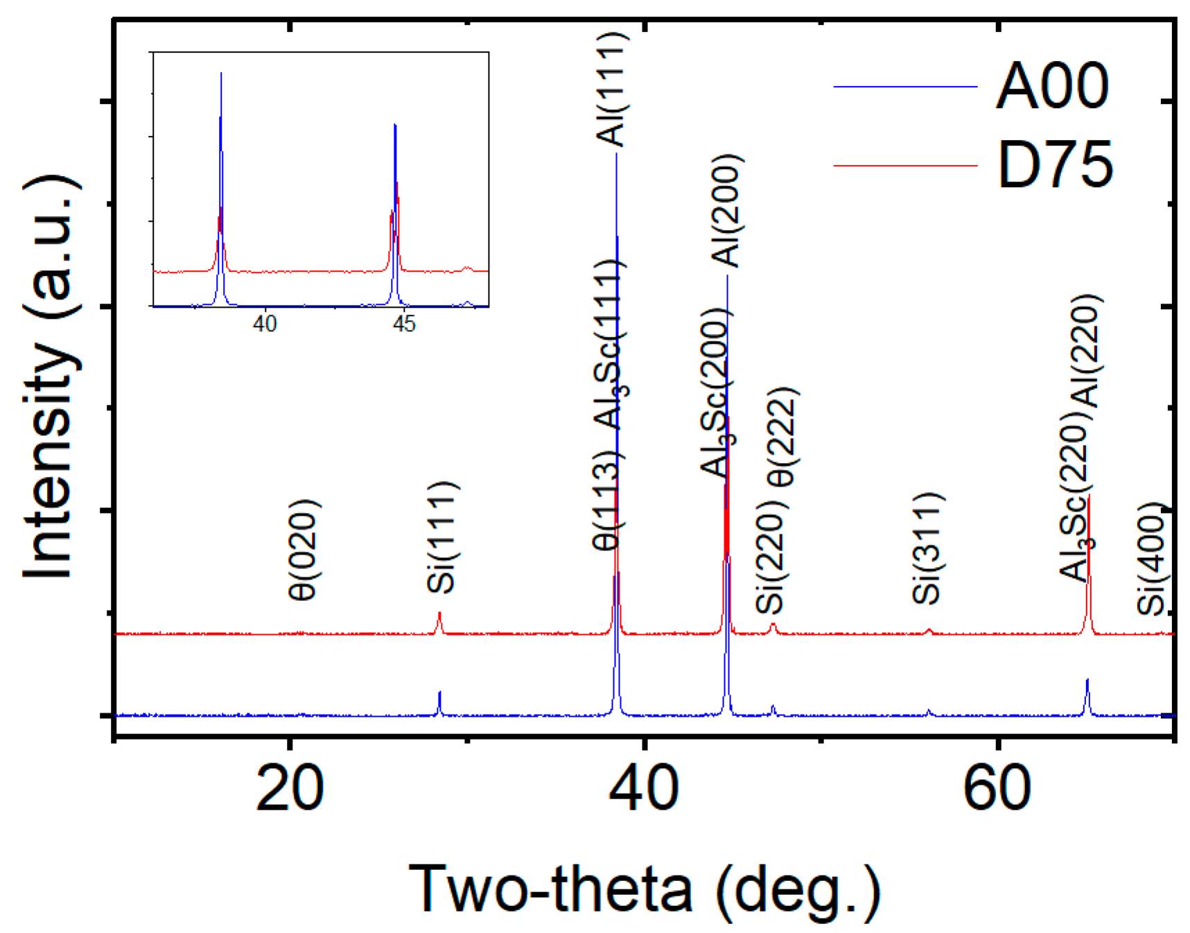 | Alloy | Al (bal.) | Si | Cu | Mg | Fe | Sr | Sc | Zr |