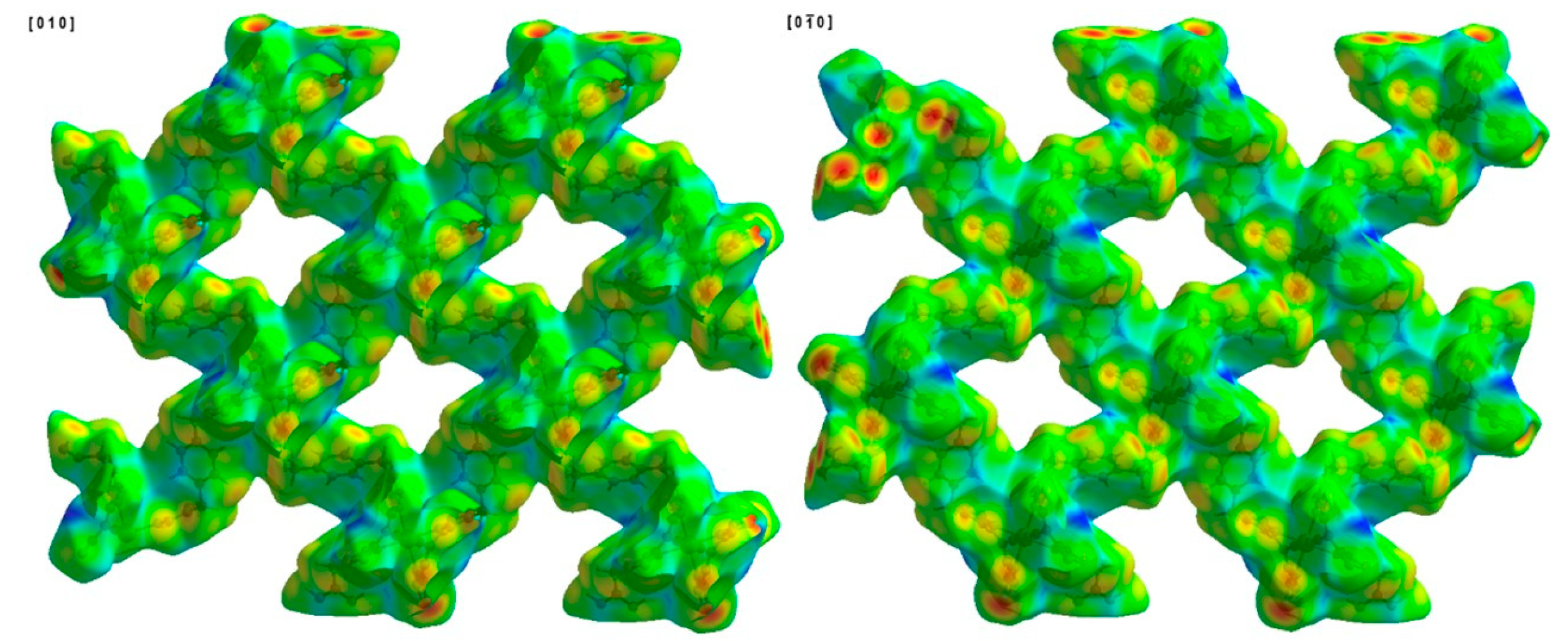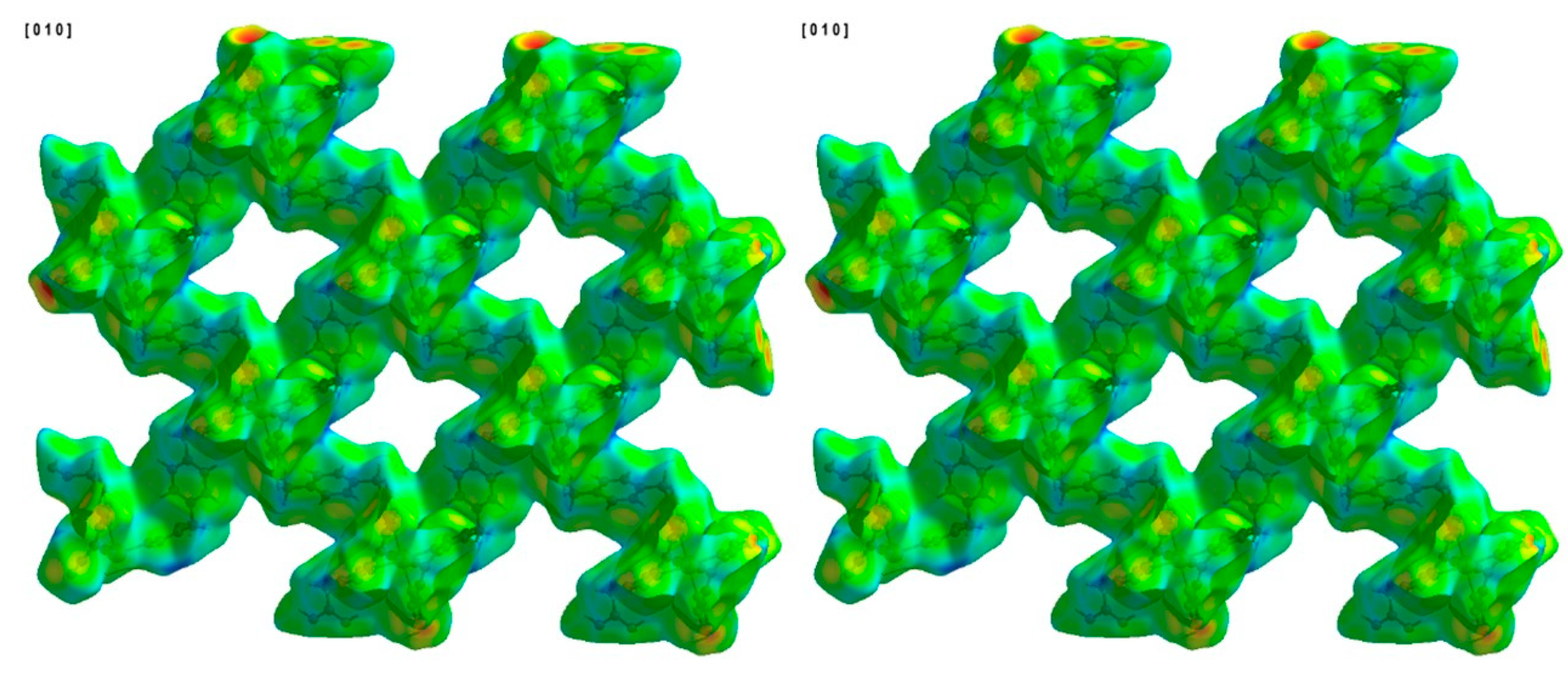 - Spackman, P.R.; Turner, M.J.; McKinnon, J.J.; Wolff, S.K.; Grimwood, D.J.; Jayatilaka, D.; Spackman, M.A. CrystalExplorer: A program for Hirshfeld surface analysis, visualization and quantitative analysis of molecular crystals. J. Appl. Cryst. 2021, 54, 1006–1011. [Google Scholar] [CrossRef] [PubMed]