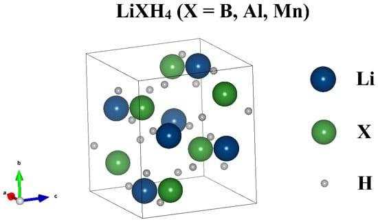 Demonstration of the unit cell of LiXH4 (X = B, Al, Mn) compounds.