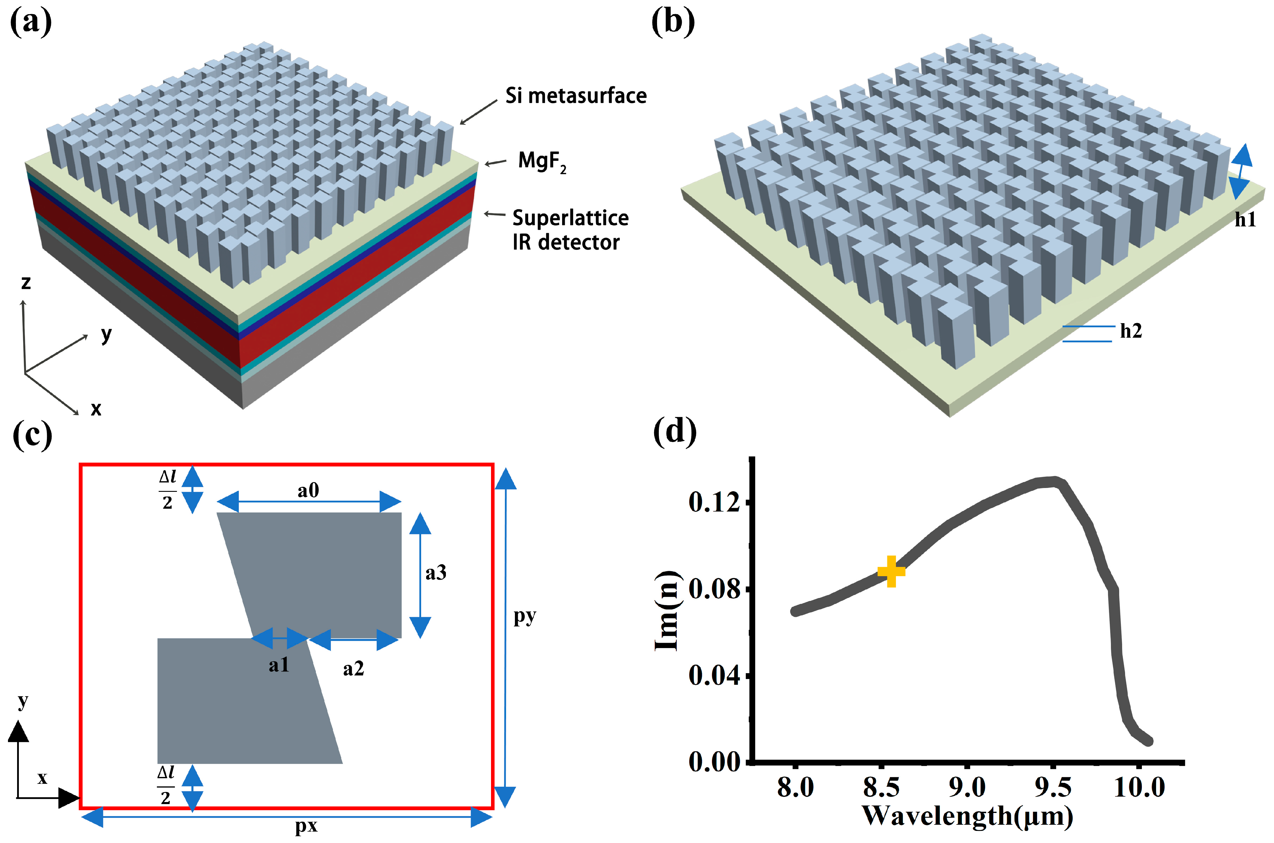 - Cheng, B.; Zou, Y.; Song, G. Full-Stokes polarization short-wave infrared photodetector based on the doubly regulated dielectric metasurfaces. Optik 2025, 322, 172198. [Google Scholar] [CrossRef]